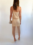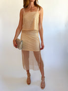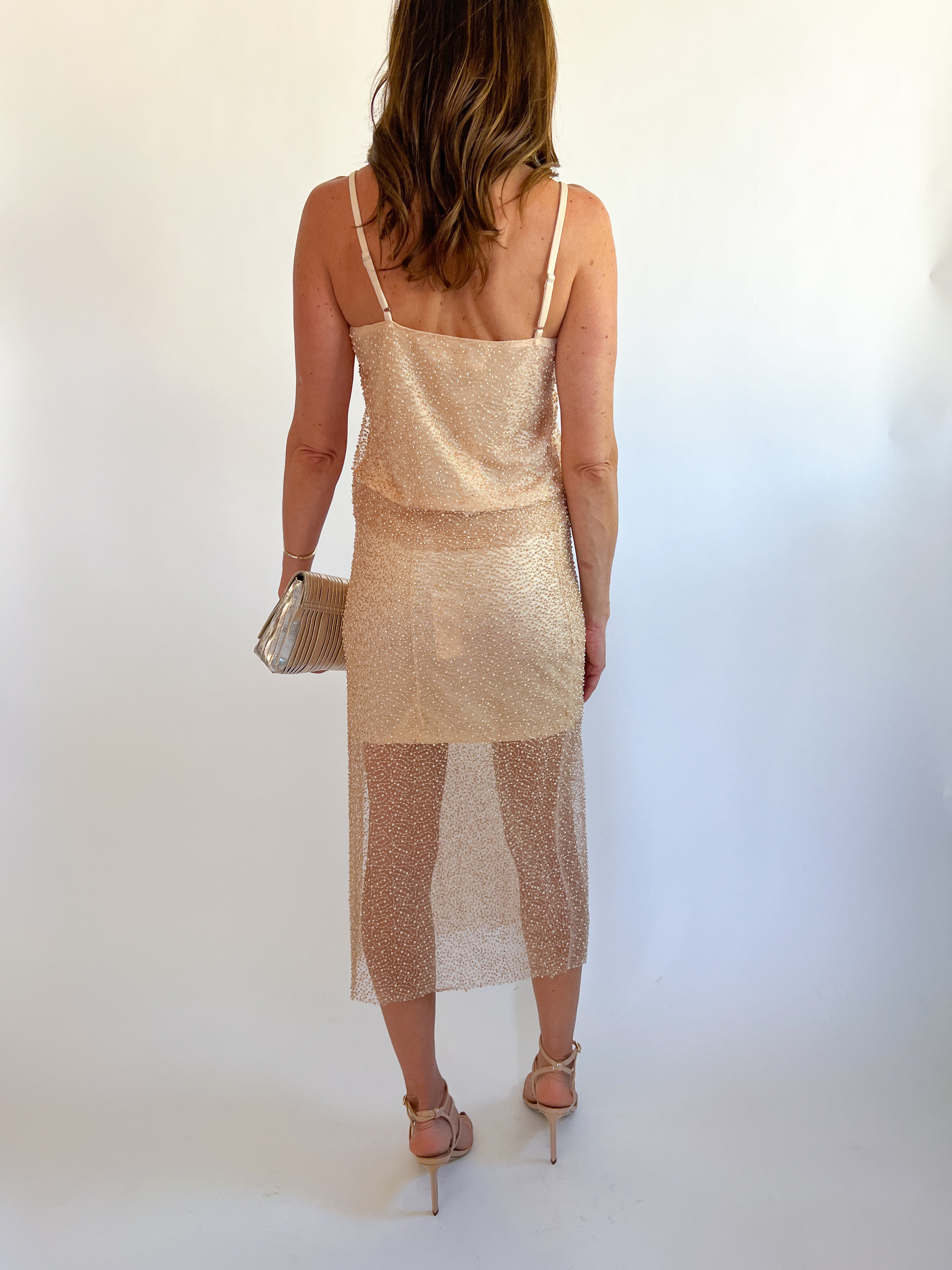 • Mesh Overlay With Metallic Bead & Pearl Embellishments