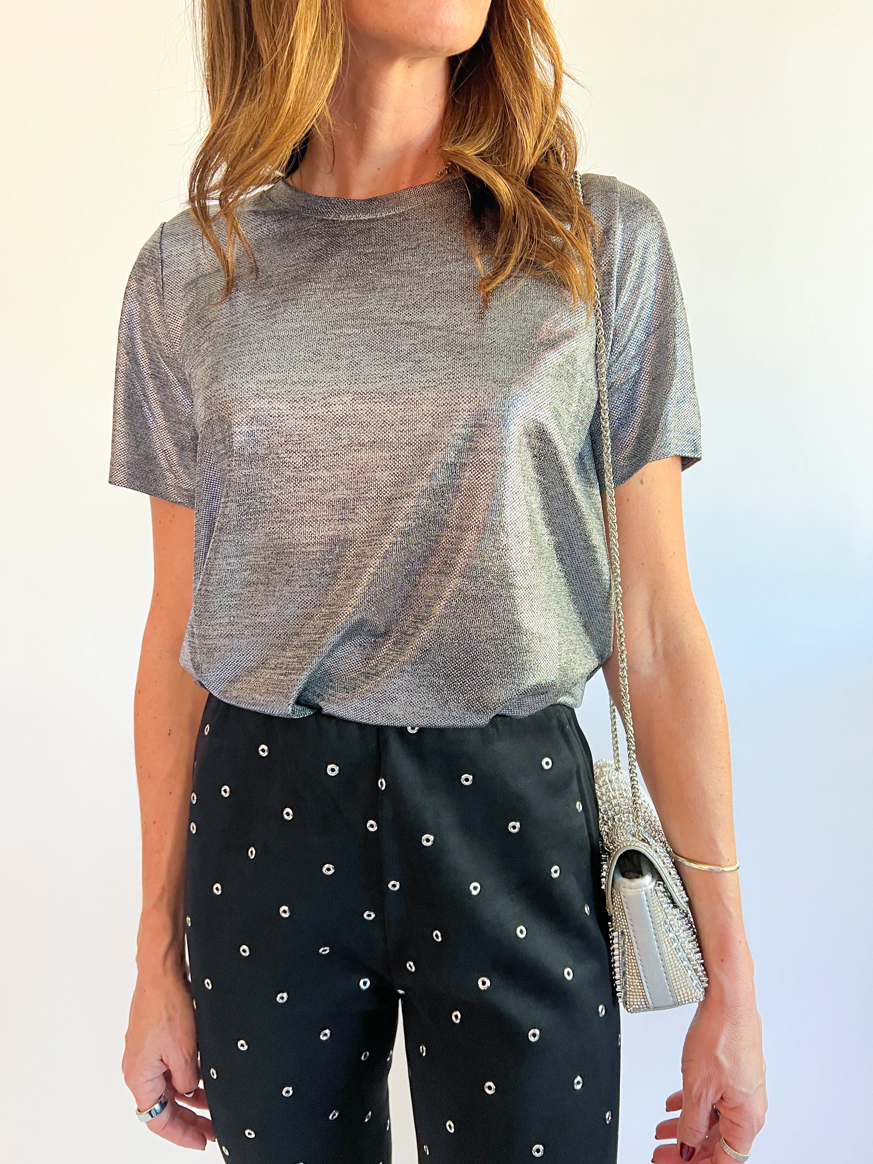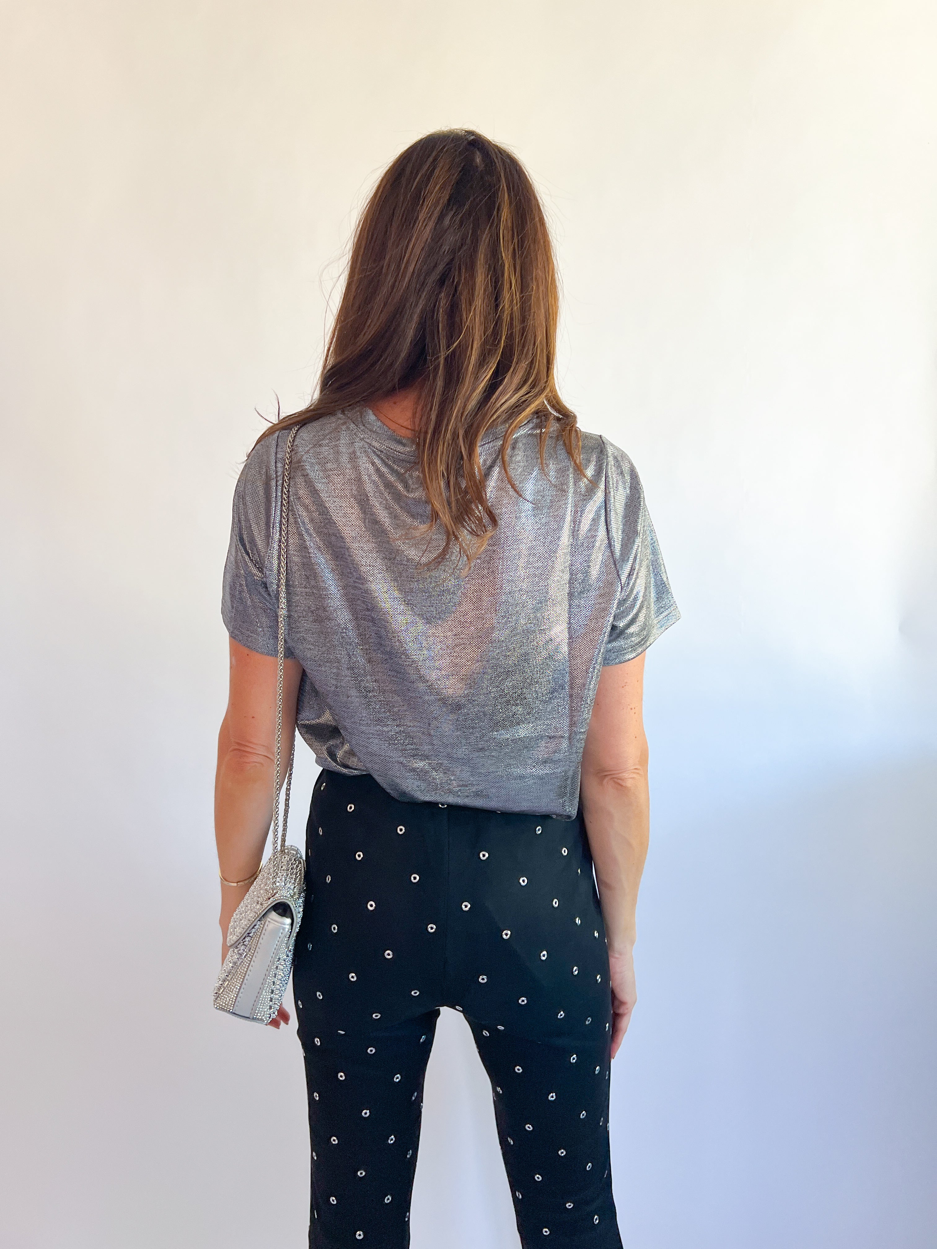 Elevate your wardrobe with the Silver Halo Top, a versatile piece that adds a touch of shimmer and style to any outfit. Perfect for day or night, its sleek design complements both casual and dressy looks effortlessly. Shine bright and feel confident wherever you go with this must-have top!