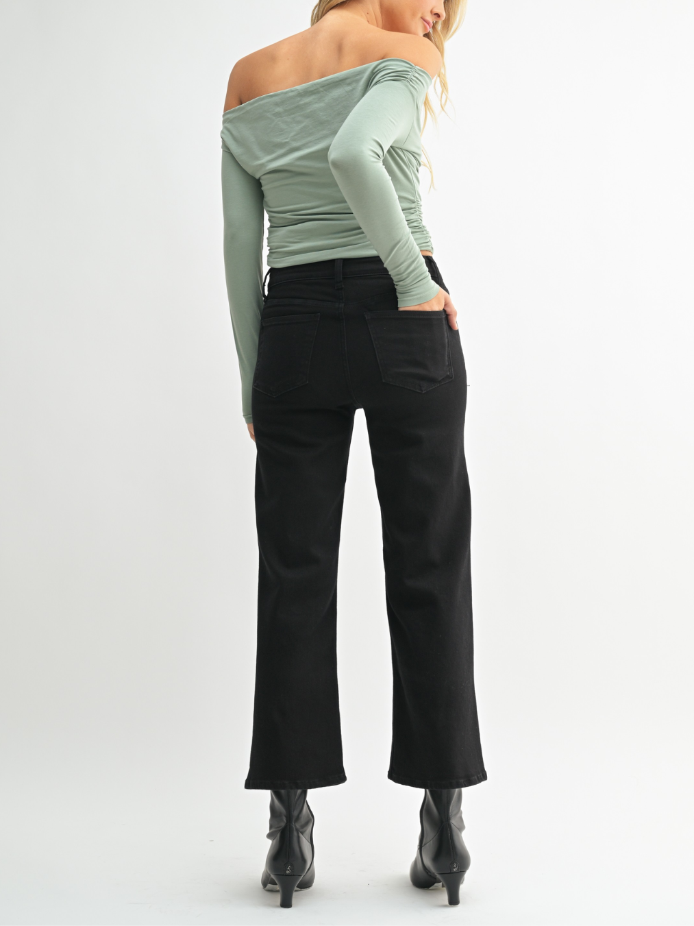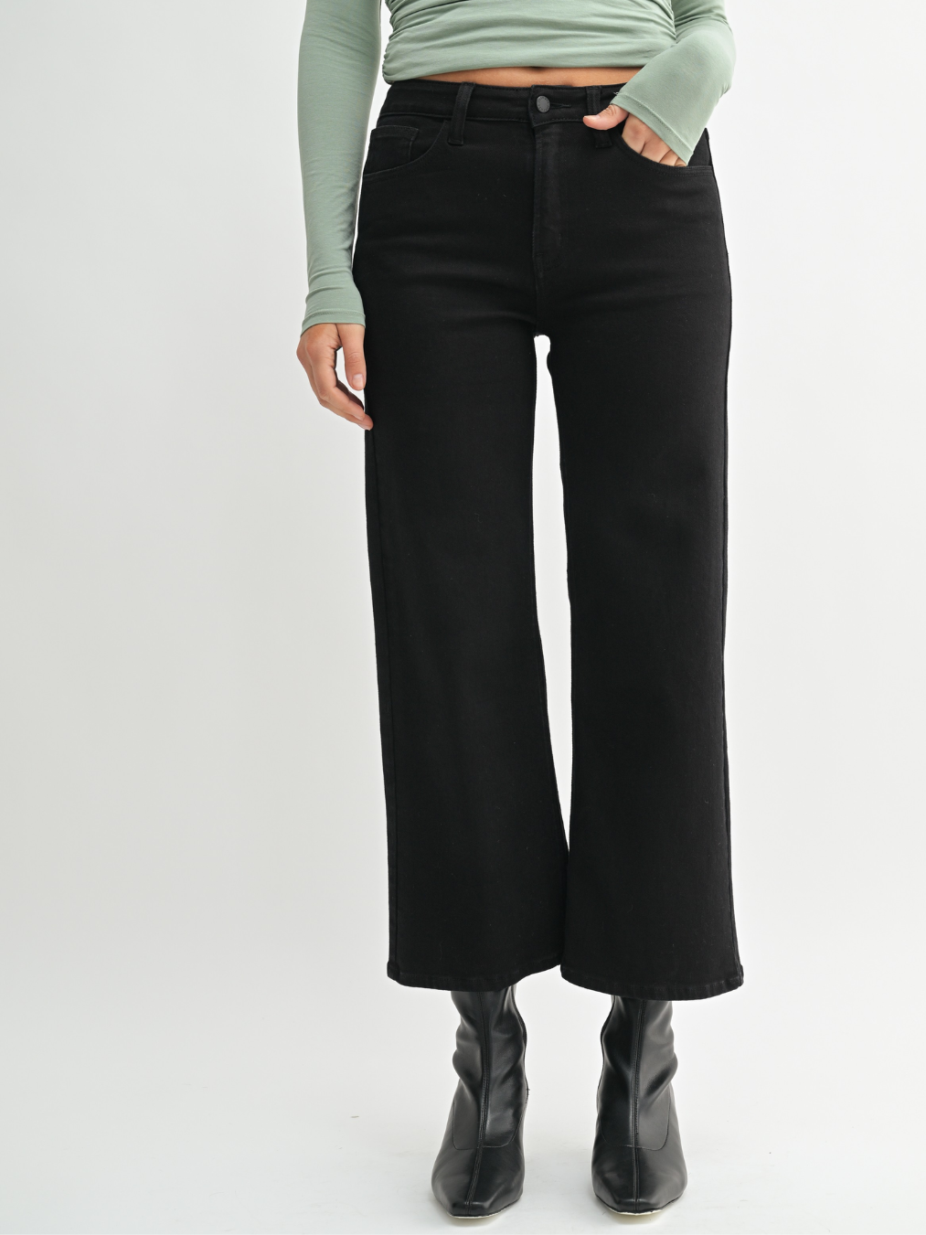 Back by popular demand, The Slim Wide Leg. These high-waisted jeans are slim through the waist and open up past the thigh. Plus these jeans are made with our ultra-soft and stretchy fabric, which is flattering on everyone.
