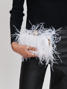 Make a glamorous entrance with the Harlow feather evening bag! This luxurious clutch features stunning feather detailing that catches the light and turns heads wherever you go. Perfect for cocktail parties, galas, or special nights out, it's the ultimate accessory for elevating your evening look. The elegant design pairs beautifully with dresses, jumpsuits, or formal wear, while the compact size keeps your essentials within reach. Sophisticated, eye-catching, and undeniably chic, the Harlow is your ticket to unforgettable style moments!