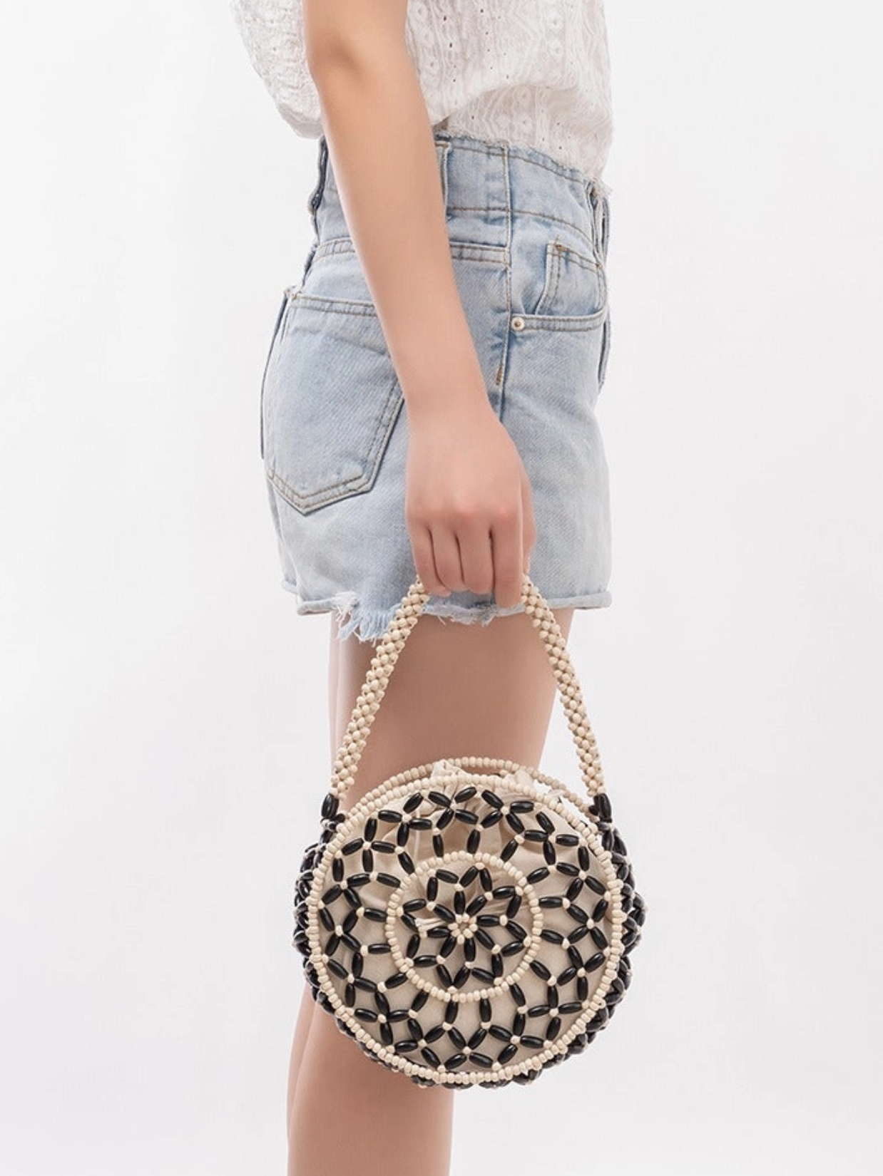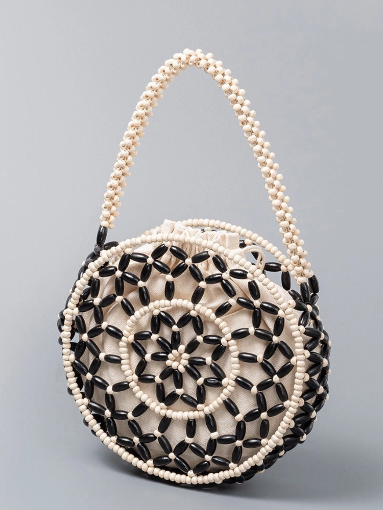 Round Wooden Bead Shoulder Bag
