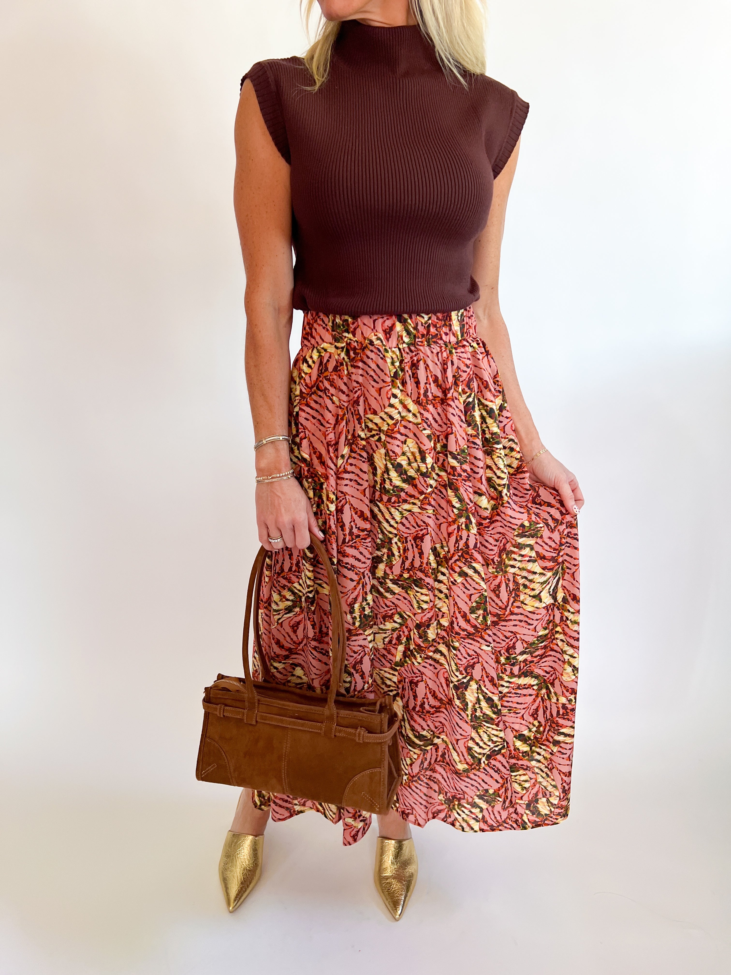 The vibrant Sasha Skirt stands out with its unique textured crinkle effect and graceful midi-length silhouette, creating a perfect balance of playful charm and elegant style. Designed to flow beautifully with every step, it adds movement and personality to your outfit.