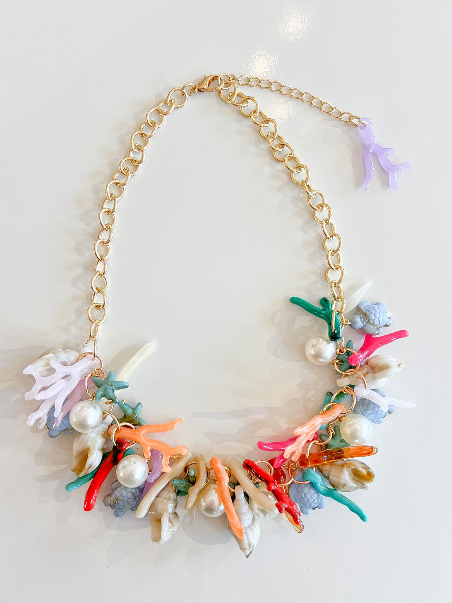 Delicate ocean-inspired necklace featuring charming sea-themed pendants that capture the essence of coastal beauty. Each charm tells a story of the sea, from starfish to shells, crafted with attention to detail. Perfect for beach lovers and those who carry the ocean in their heart. Layer it with other pieces or wear it solo for an effortless, breezy aesthetic. A timeless accessory that brings a touch of seaside elegance to any outfit.