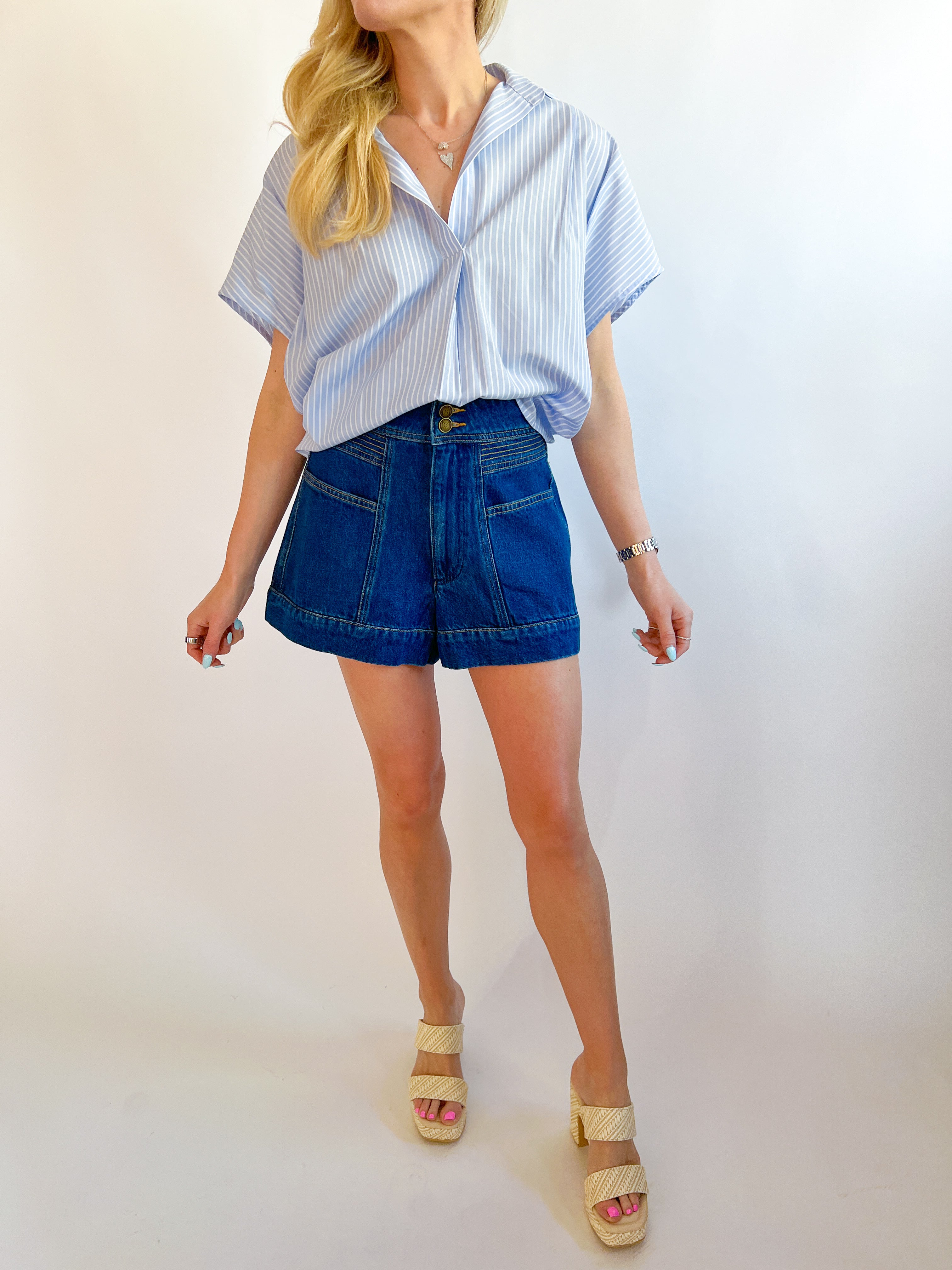 Make a timeless statement with this striped classic top, designed with a refined V-neck and structured collar for an instantly put-together look. The crisp stripes add visual interest while maintaining that sophisticated edge you love. Whether you're heading to the office, meeting friends for lunch, or enjoying a casual weekend, this top delivers effortless style that works with everything in your closet. Pair it with jeans, trousers, or skirts for a polished appearance that never goes out of style.