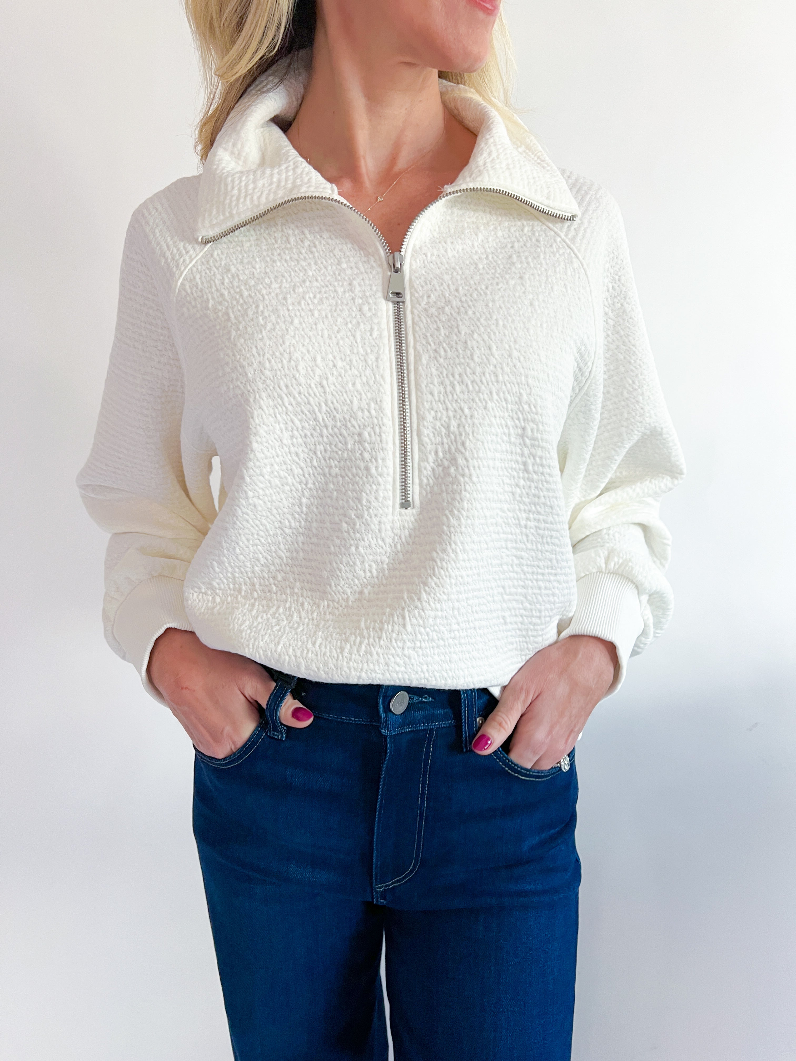 Meet the Kimberly Textured Zip Up Popover Top—your new favorite layering piece! With its convenient zip-up design and interesting texture, the Kimberly brings both style and practicality to your everyday rotation. Throw it on over a tee, layer it under a jacket, or wear it solo—this versatile top adapts to your mood and the weather. The textured fabric adds visual interest while the relaxed popover fit keeps you comfortable all day long. Get ready to love how easy it is to look great!