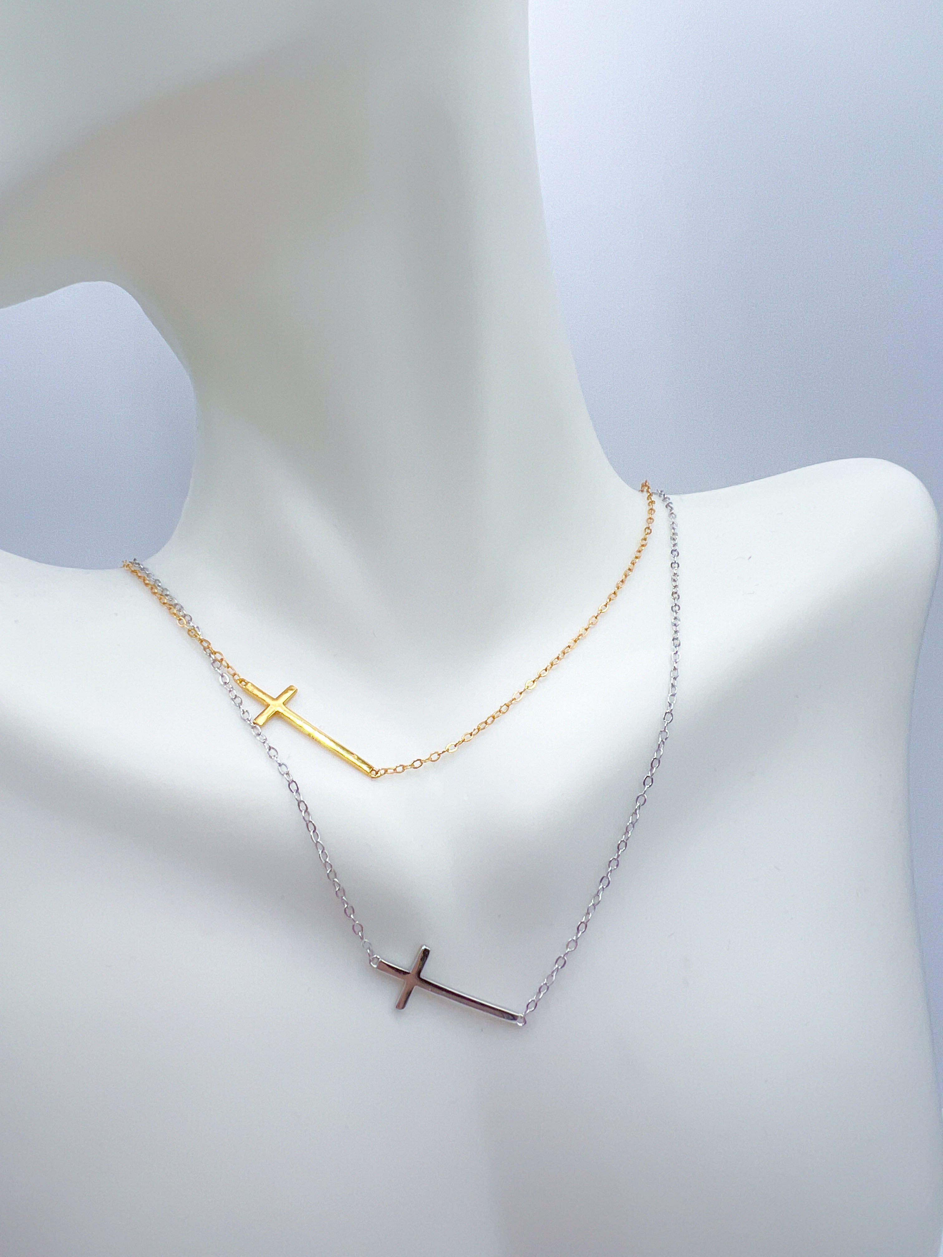 Add a touch of unique and playful charm to your jewelry collection with our Sideway Cross Necklace. This necklace features a sideways cross design, perfect for those who like to think outside the box. Wear it to add a fun twist to any outfit, and let it be a reminder to always stay true to yourself.