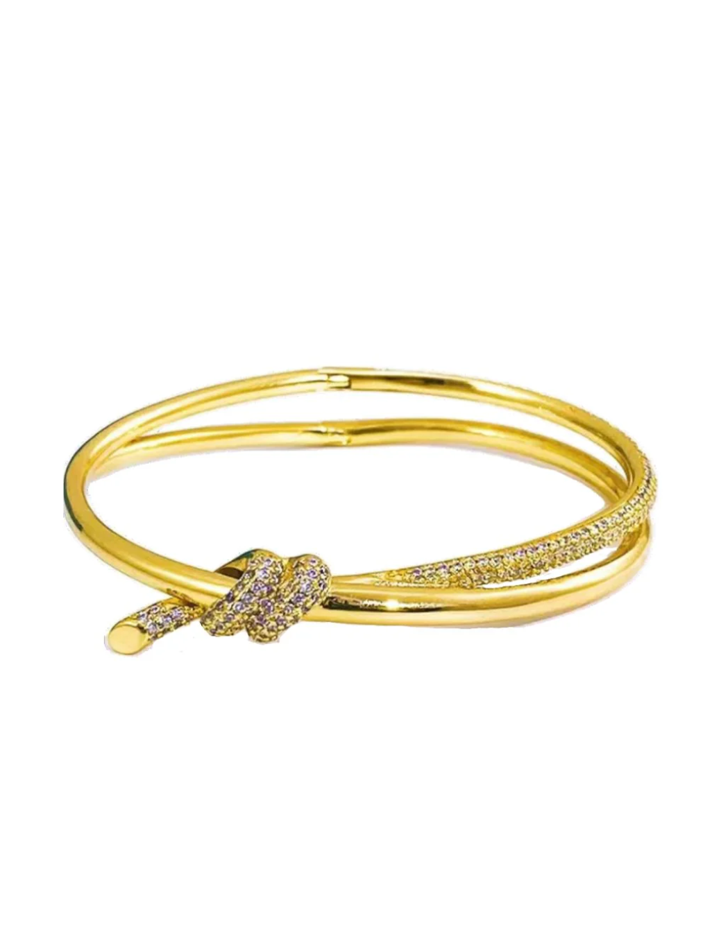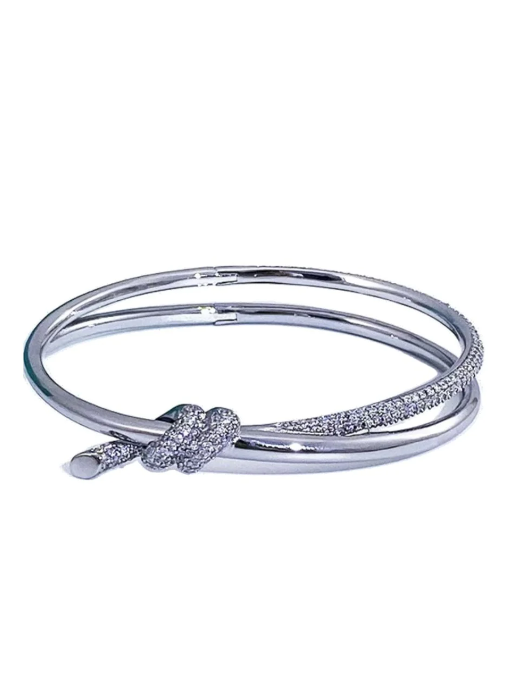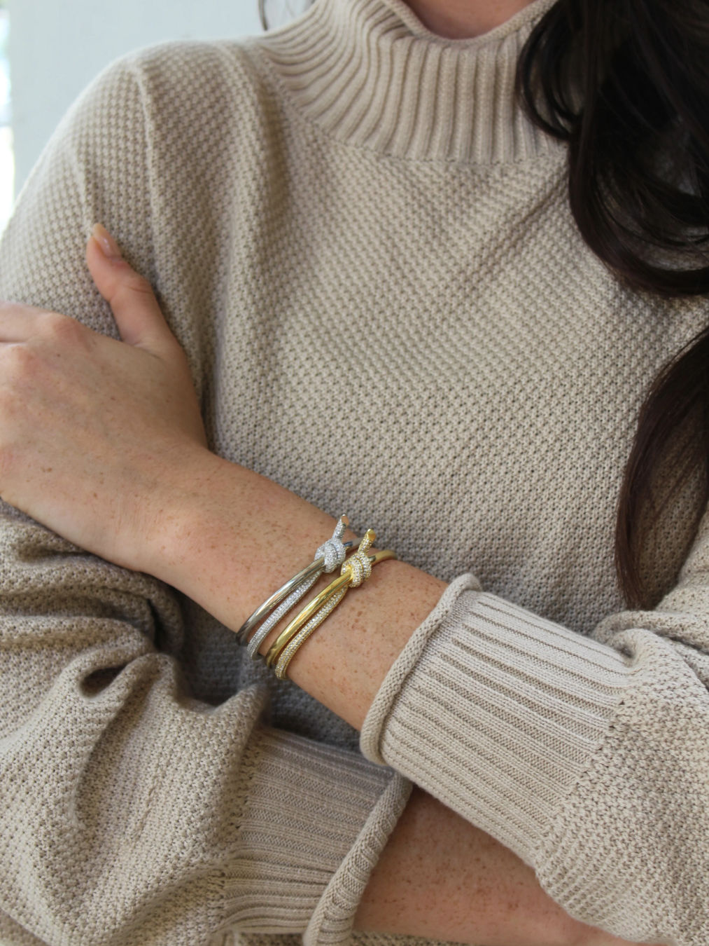 Add a touch of elegance to any outfit with our Pave Knot Bangle. The bangle is designed with a stunning knot center accent, making it the perfect accessory for any occasion. Elevate your style with our sleek and stylish bangle.
