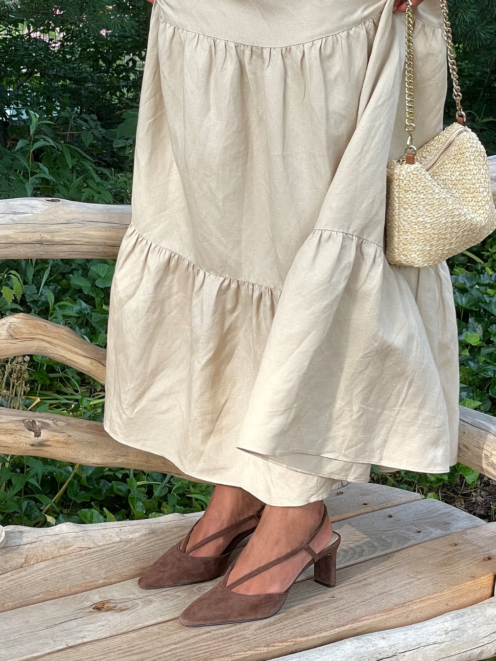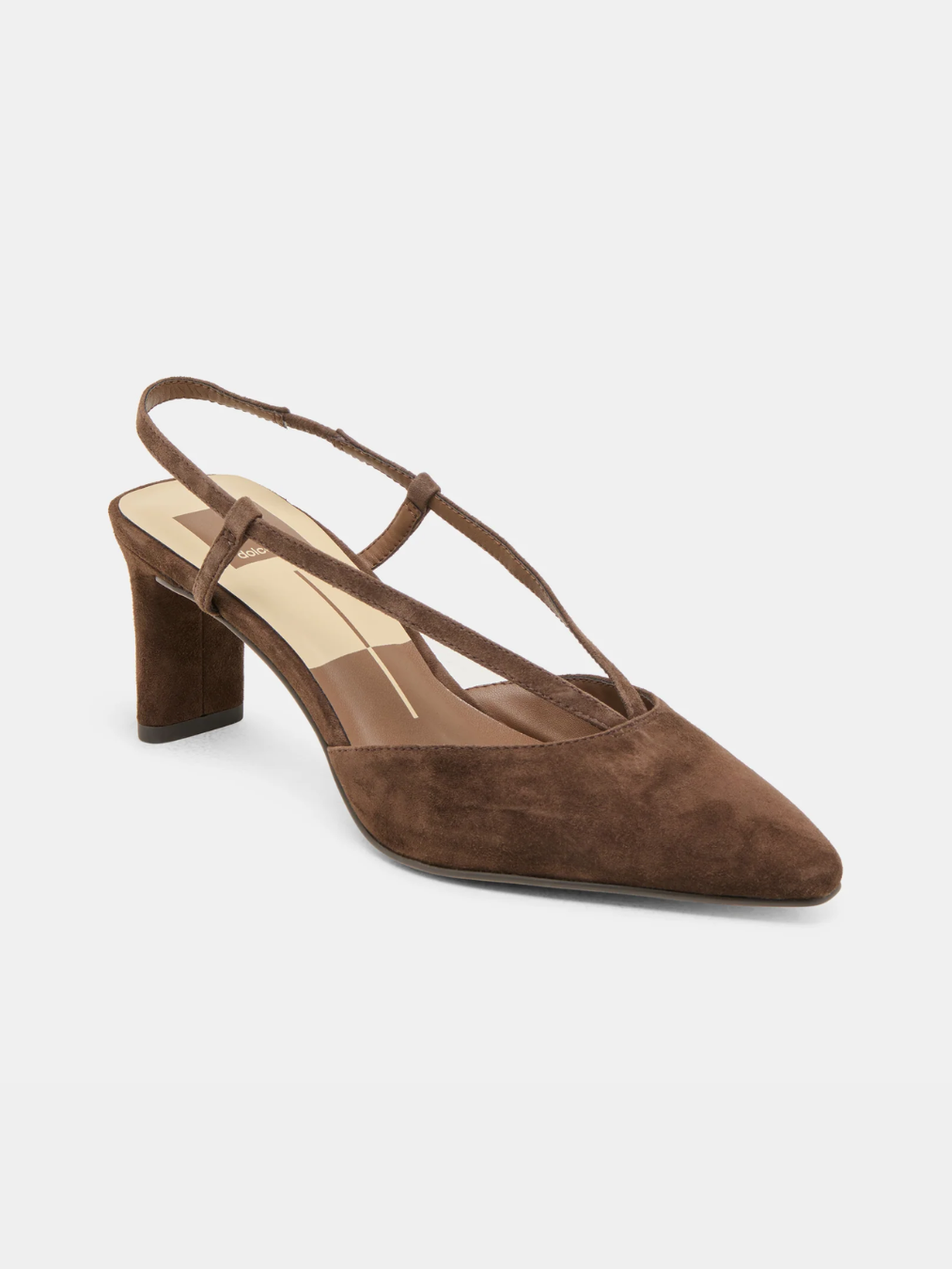 Step out in style with the Ginay Suede Heel, a polished and modern choice designed to complement any outfit. Featuring an architectural heel and pointed toe, this sophisticated shoe pairs perfectly with both workdays and weekend plans. Crafted sustainably with a suede upper, recycled synthetic outsole, and water-based leather alternative lining, it offers comfort and eco-conscious style. At 2.6" heel height, Ginay delivers elegance without compromise.