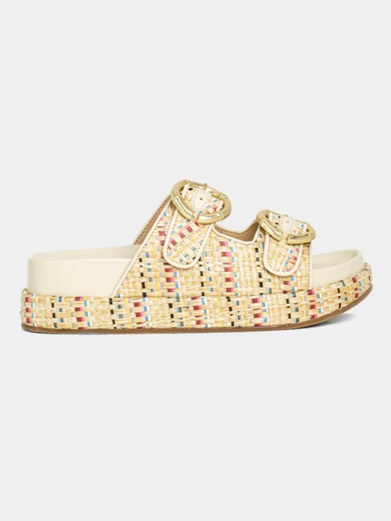 - Upper: Double-strap design with oversized buckles