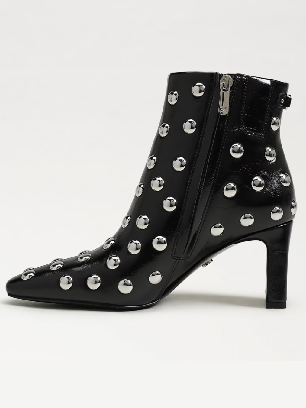 Step out in style with the Saige Studded Black Boot! Featuring a sleek pointed toe and a comfortable cushioned footbed, this bootie offers a 2.75-inch heel that adds just the right amount of edge to any outfit. Crafted from durable PU material with a convenient zipper closure, it combines fashion and function effortlessly. Perfect for turning heads wherever you go!