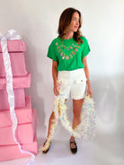 Celebrate the festive season in style with our Bright Green Christmas Necklace Tee! This lively tee features a bold green shade that brightens your holiday spirit, paired with a fun necklace graphic that makes it a standout piece for any casual gathering. Comfortable and cheerful, it’s perfect for spreading holiday joy wherever you go.