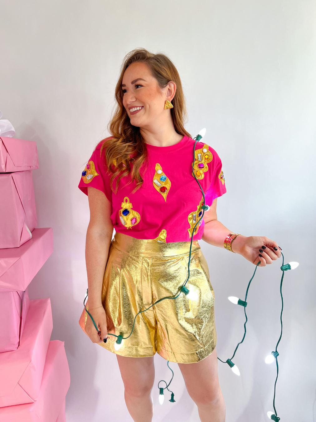 Add a pop of vibrant color to your wardrobe with the Hot Pink Multi Diamond Ornament Tee. This lively tee features a playful diamond ornament design in multiple shades, perfect for brightening up any casual look. Made for comfort and style, it’s an easy way to stand out and share your fun-loving spirit wherever you go.