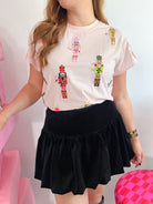 Celebrate the season in style with this Light Pink Cocktail Serving Nutcracker Tee. Soft and comfortable, it’s perfect for holiday parties or casual outings. The charming nutcracker design adds a festive touch, making every cocktail hour feel a little more magical. Pair it with your favorite jeans or skirt for an effortlessly fun look that’s sure to spark conversation and smiles.