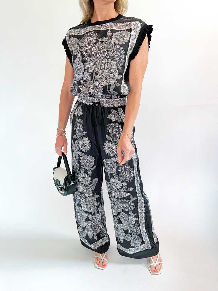 Black Paisley High Waist Pants