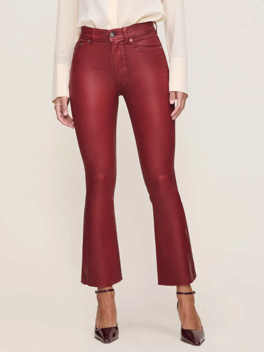 Cherry Coated Bridget Cropped Jeans features a high-rise, cropped bootcut silhouette enhanced with Instasculpt™ technology to shape, smooth, and hug your body for an ideal fit. The Cherry Coated denim showcases a wax-coated, vibrant red finish with a leather-like texture.