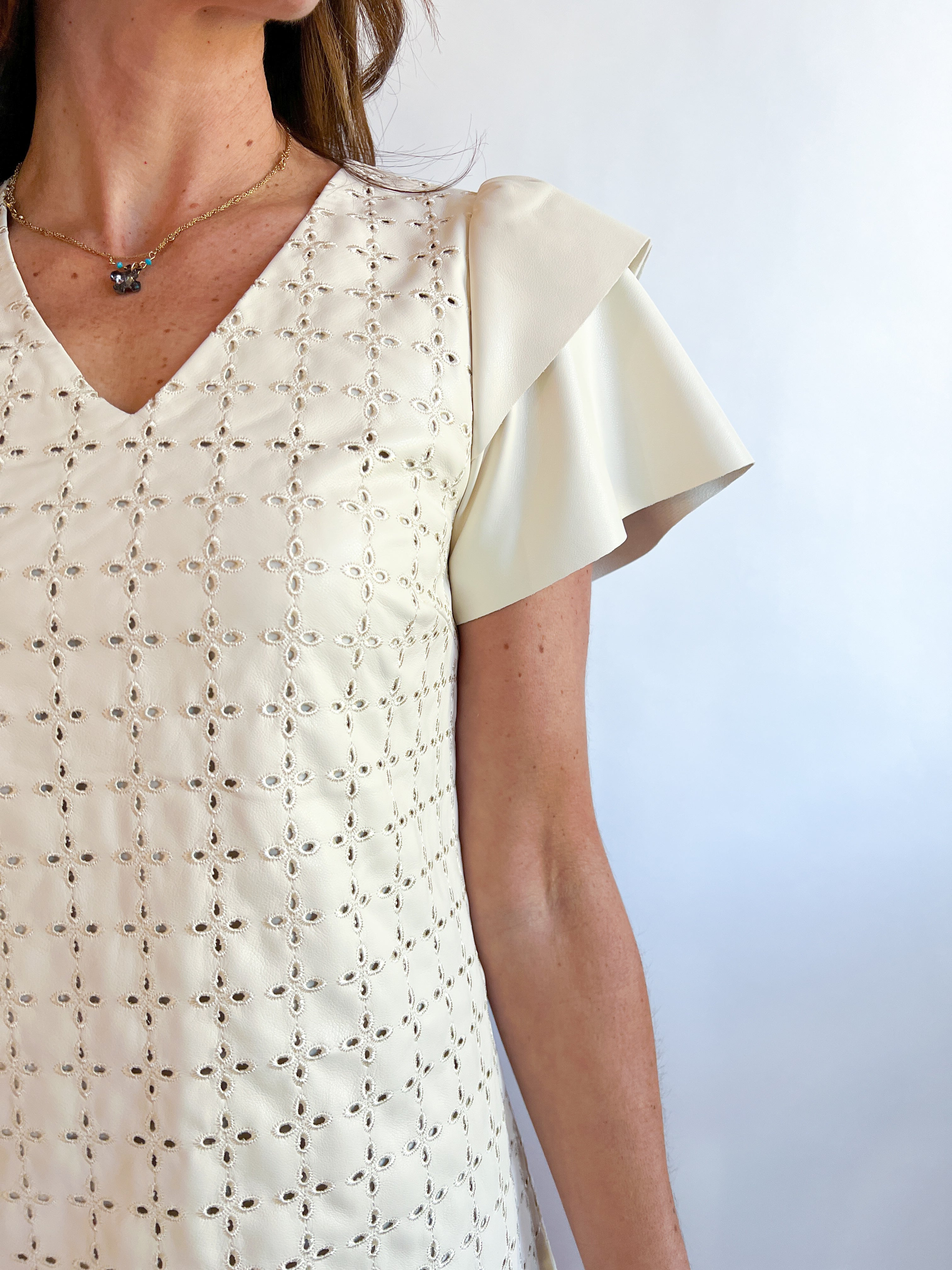 Get ready to turn heads in this show-stopping leather eyelet dress! This unique piece masterfully blends edgy leather with delicate eyelet detailing for a look that's both bold and feminine. The intricate eyelet cutouts add breathability and visual appeal, while the leather construction ensures durability and timeless style. Perfect for date night, special occasions, or whenever you want to feel absolutely fabulous, this dress strikes the perfect balance between sophisticated and daring. Grab yours today and prepare for compliments from every direction!