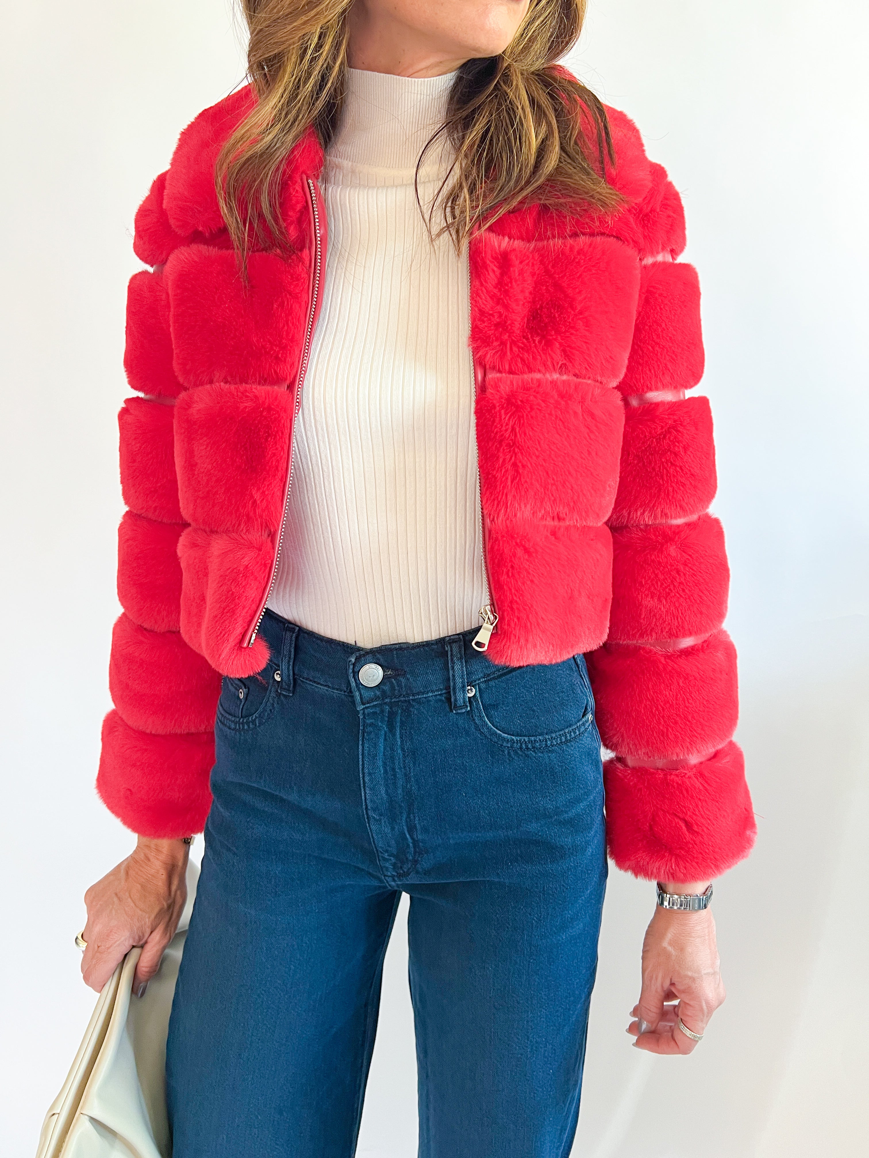 Stay cozy and stylish with the Jessica Cropped Fur Jacket! Its plush texture and flattering cropped cut make it the perfect layering piece for cooler days. Whether dressing up for a night out or adding a chic touch to your casual look, this jacket brings warmth and effortless glamour to your wardrobe. Feel fabulous and wrapped in comfort every time you wear it!