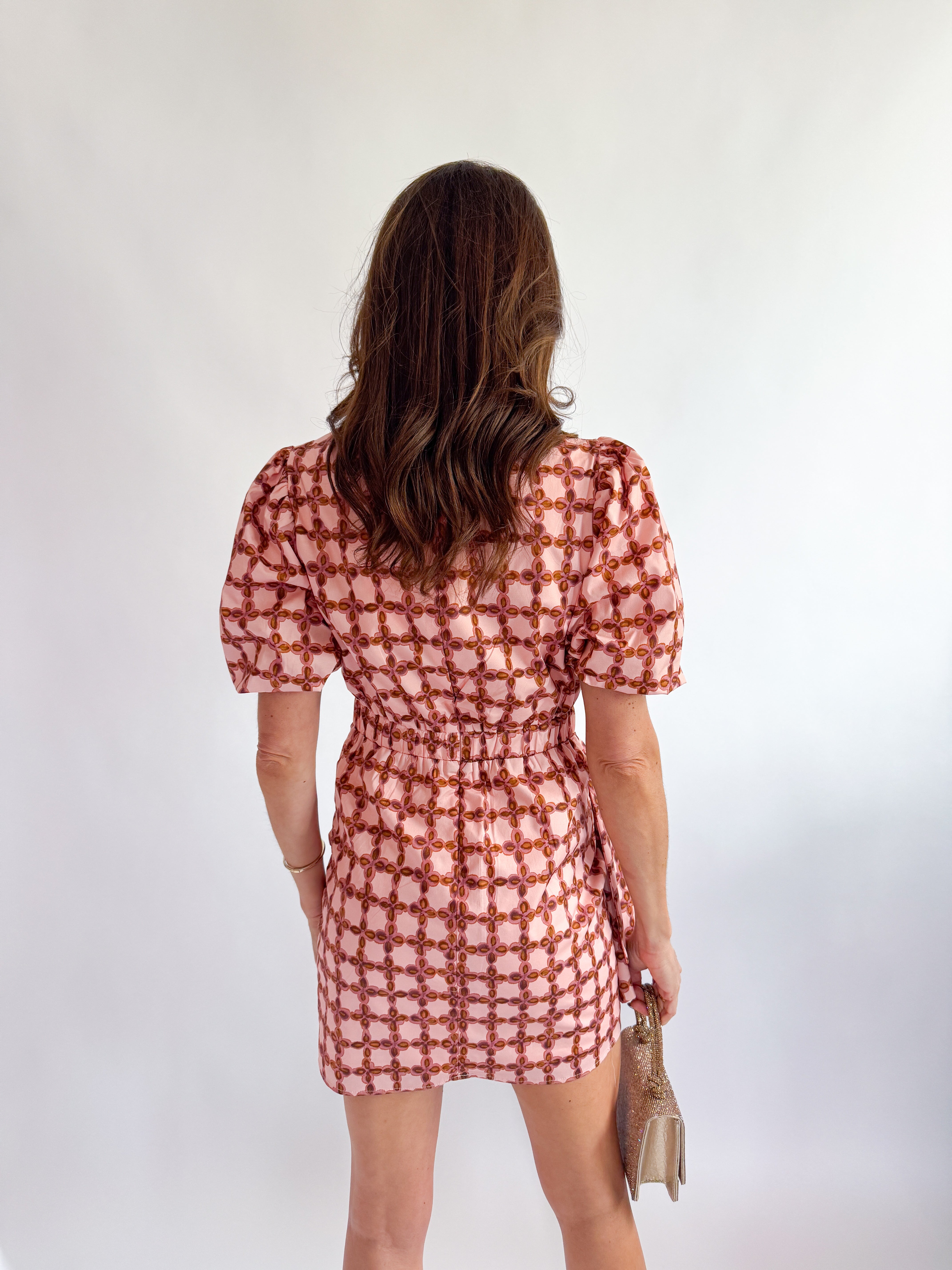 Elevate your style with this stunning chainlink ruched mini dress! Featuring playful short puff sleeves and a flattering ruched silhouette, this piece is perfect for turning heads at any occasion. The delicate chainlink detailing adds an unexpected touch of sophistication, while the mini length keeps things fun and flirty. Whether you're heading out for a night on the town or looking for that perfect statement piece, this dress delivers both comfort and undeniable charm. A wardrobe essential that's sure to become your new favorite!