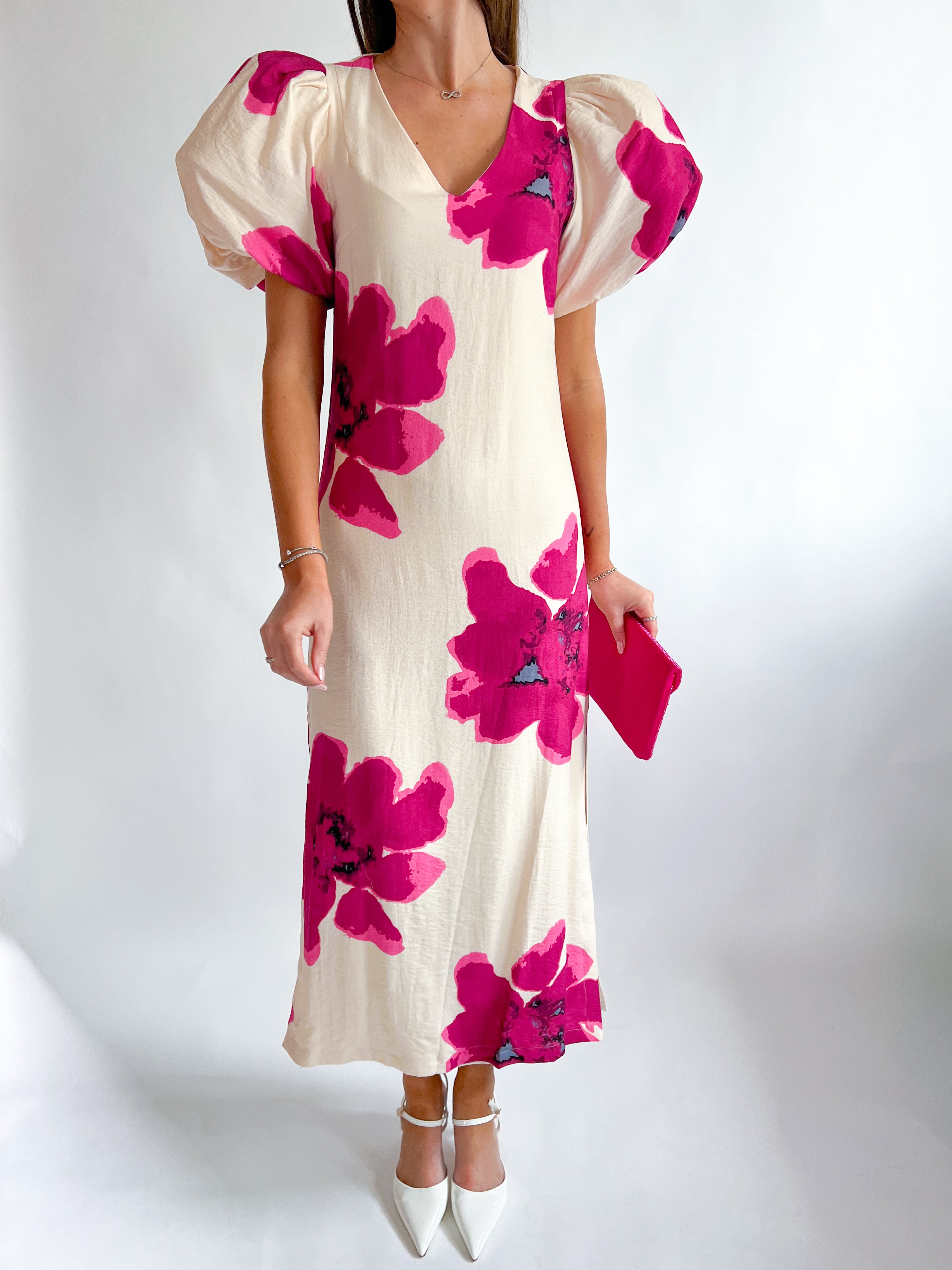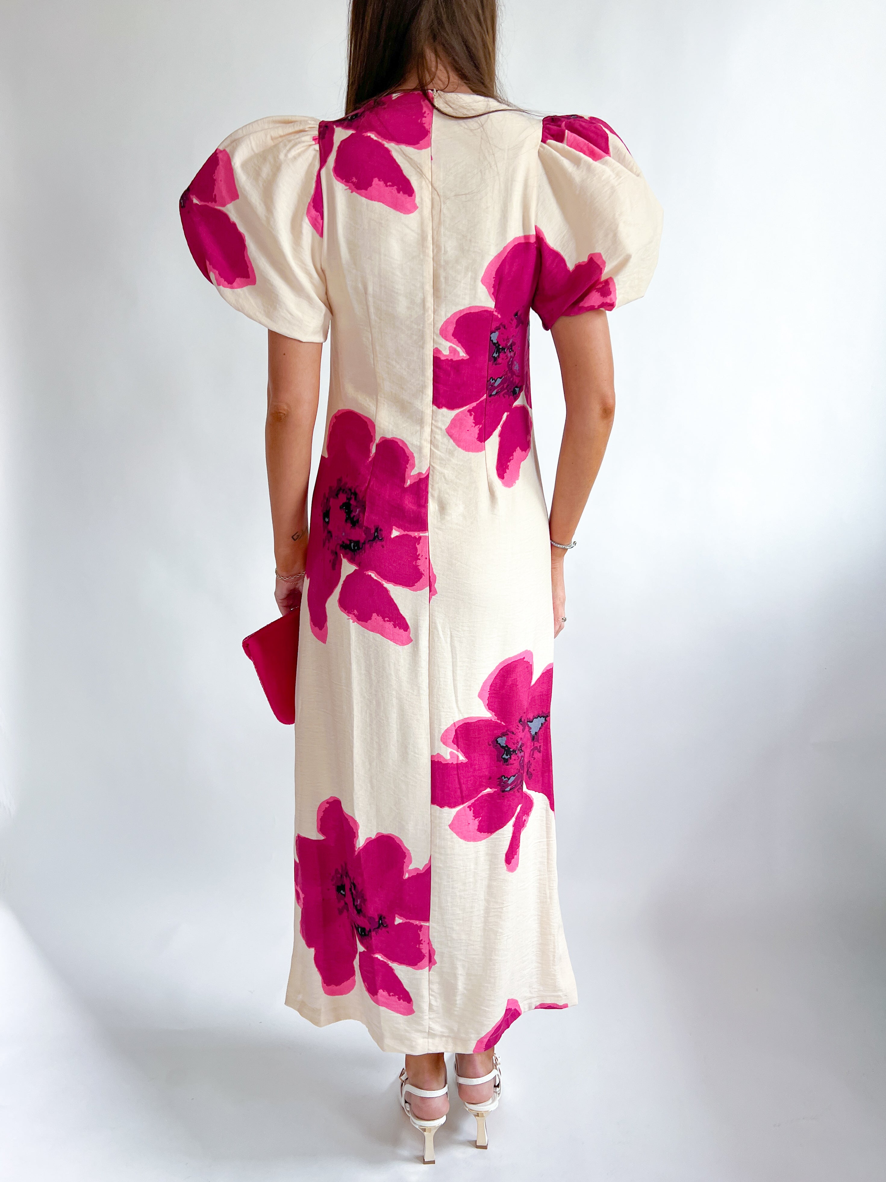 Puff-Sleeve A-Line Maxi Dress