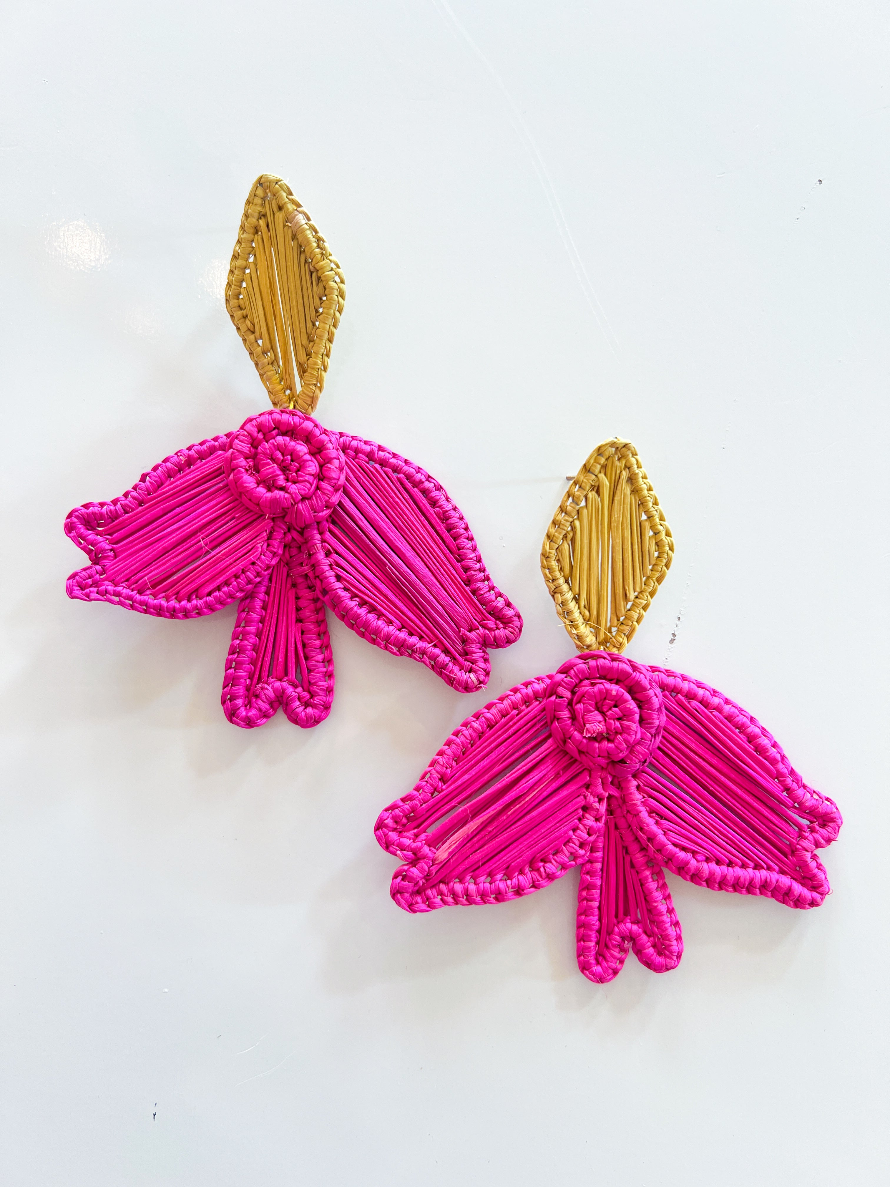 Delicate floral blooms woven into lightweight drop earrings that bring natural elegance to any look. Each pair features intricate woven details with a soft, botanical aesthetic that catches light beautifully. Perfect for adding a touch of garden-inspired charm to everyday wear or special occasions. The comfortable drop silhouette frames the face gracefully while remaining easy to wear all day long.