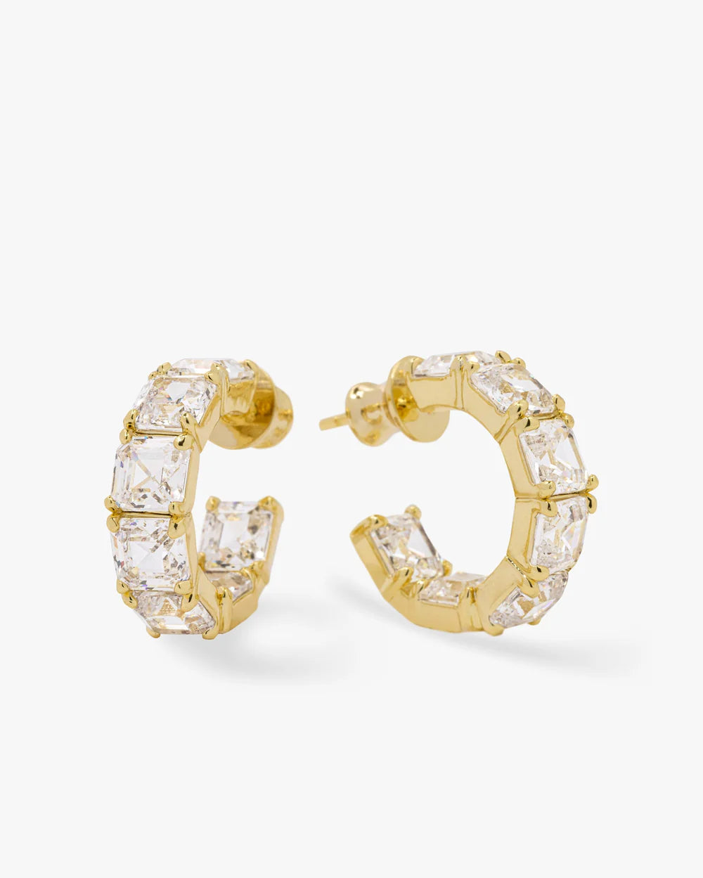 Indulge in luxury with The Queens .75" Hoops. Perfect for the dazzling and sparkling queen in you, these 3/4 inch stunners feature larger simulated diamonds that will add a touch of glamour to any outfit. Elevate your style and reign with these stunning hoops!