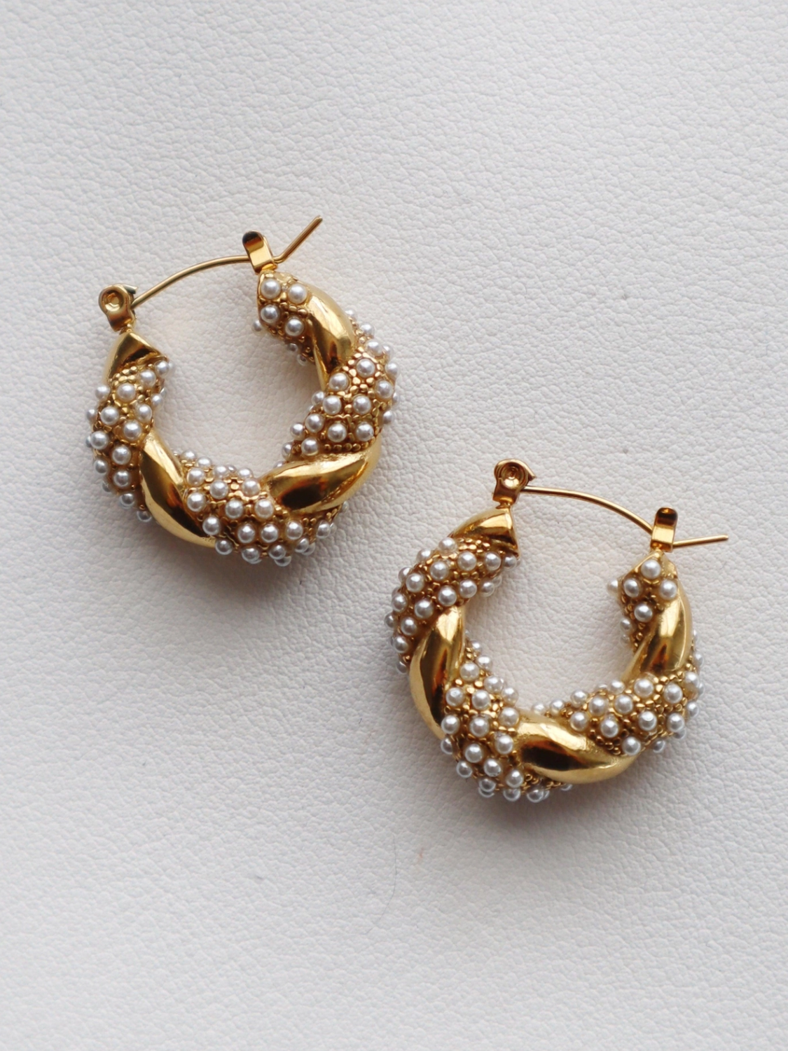 Nolita Hoops | Pearl Gold Twisted Hoops