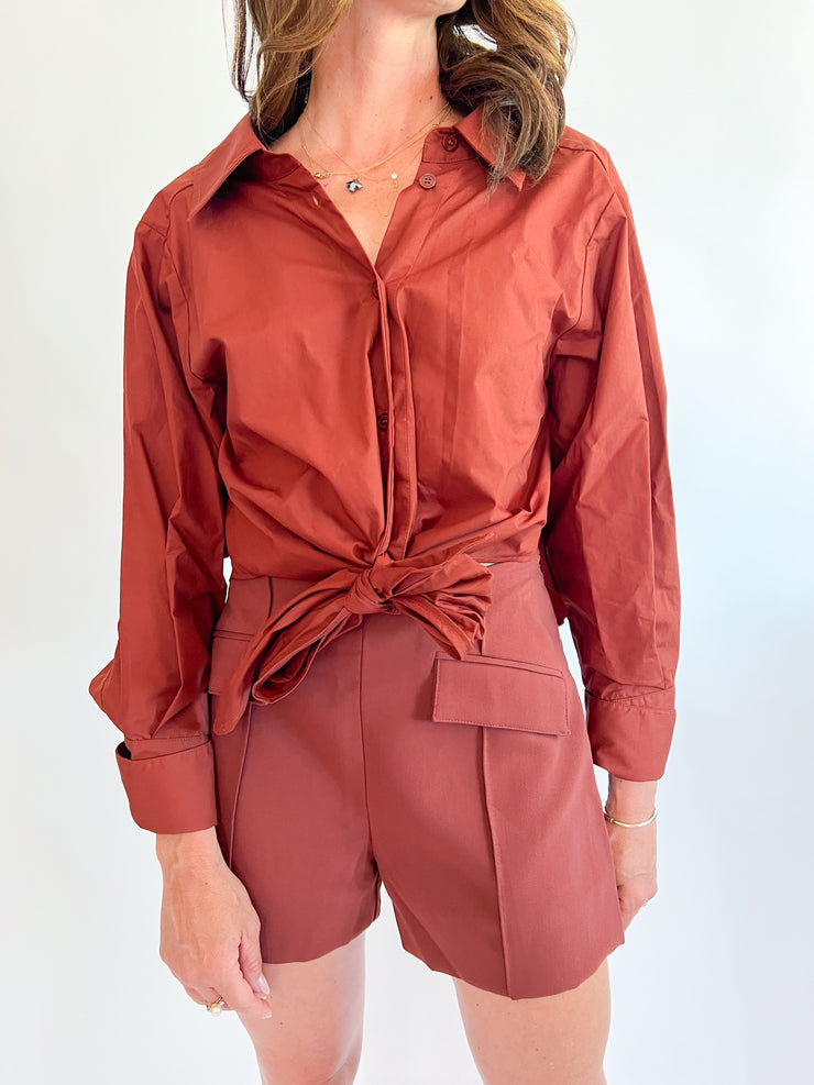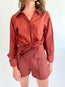The Emma Long Sleeve Top is a versatile wardrobe essential featuring a classic button-down design and a crisp collar. Its long sleeves add a touch of elegance, while the unique styling allows you to wear it as a chic front tie or a trendy wrap shirt. Perfect for mixing and matching, this top brings effortless style and fun to any outfit.