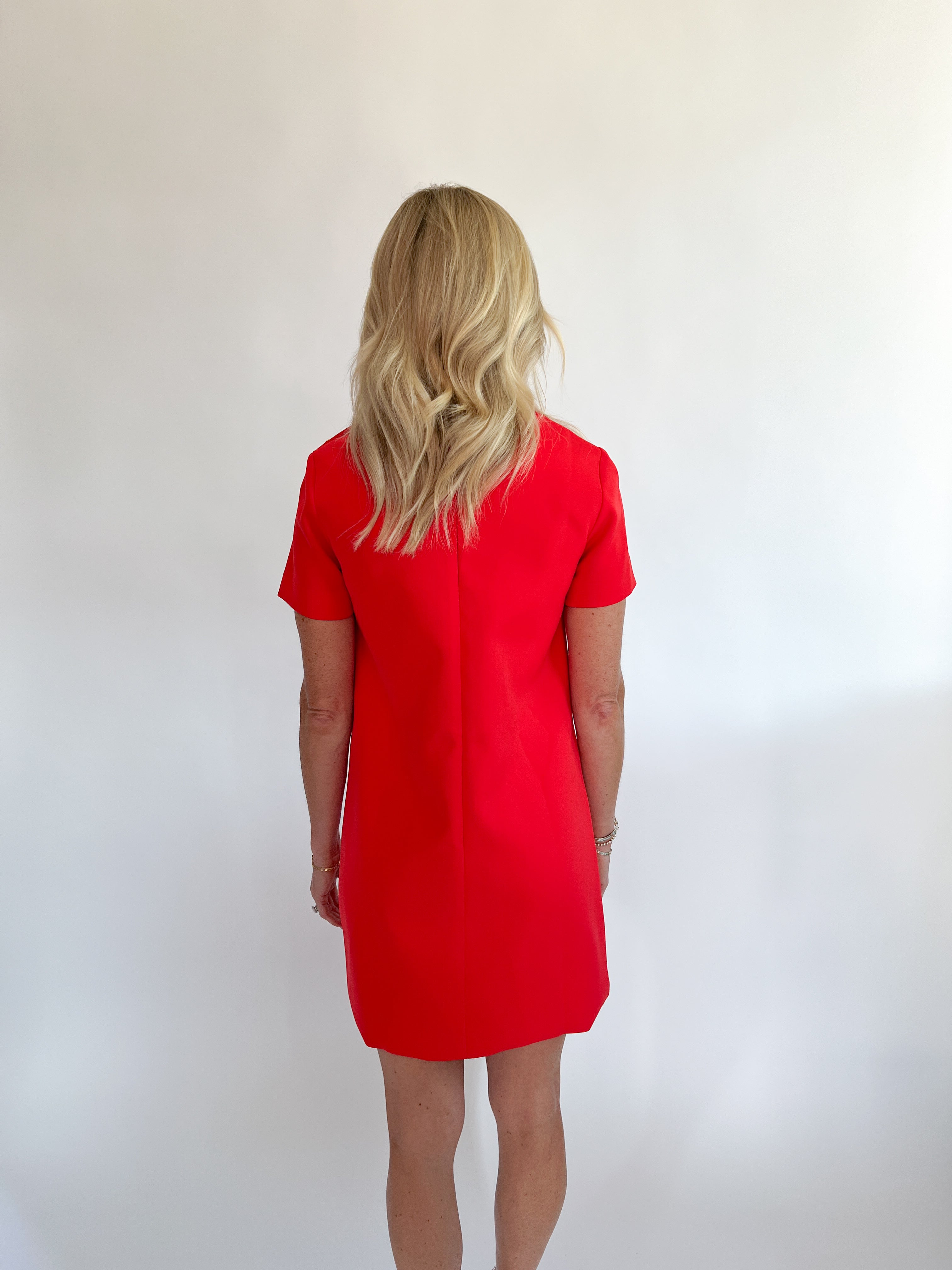 Red Short Sleeve Mini Shift Dress