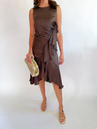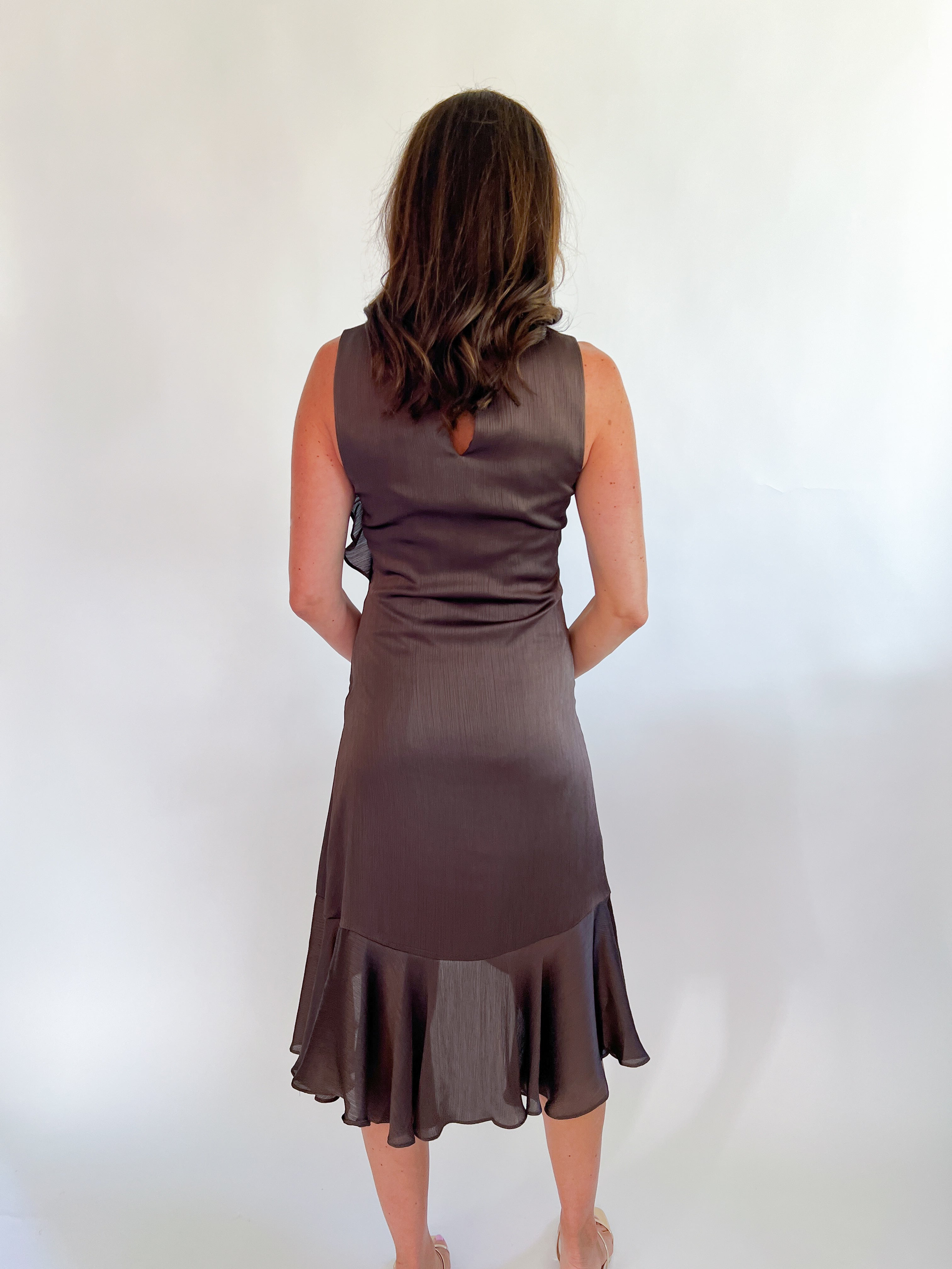 Crinkle georgette elevates this slim, sleeveless midi dress with a gorgeous texture, bold color, and a lightweight feel. With flattering front shirring, a playful asymmetrical flutter detail, and a high-low hem, this slim midi dress is the perfect choice for the next soiree on your calendar.