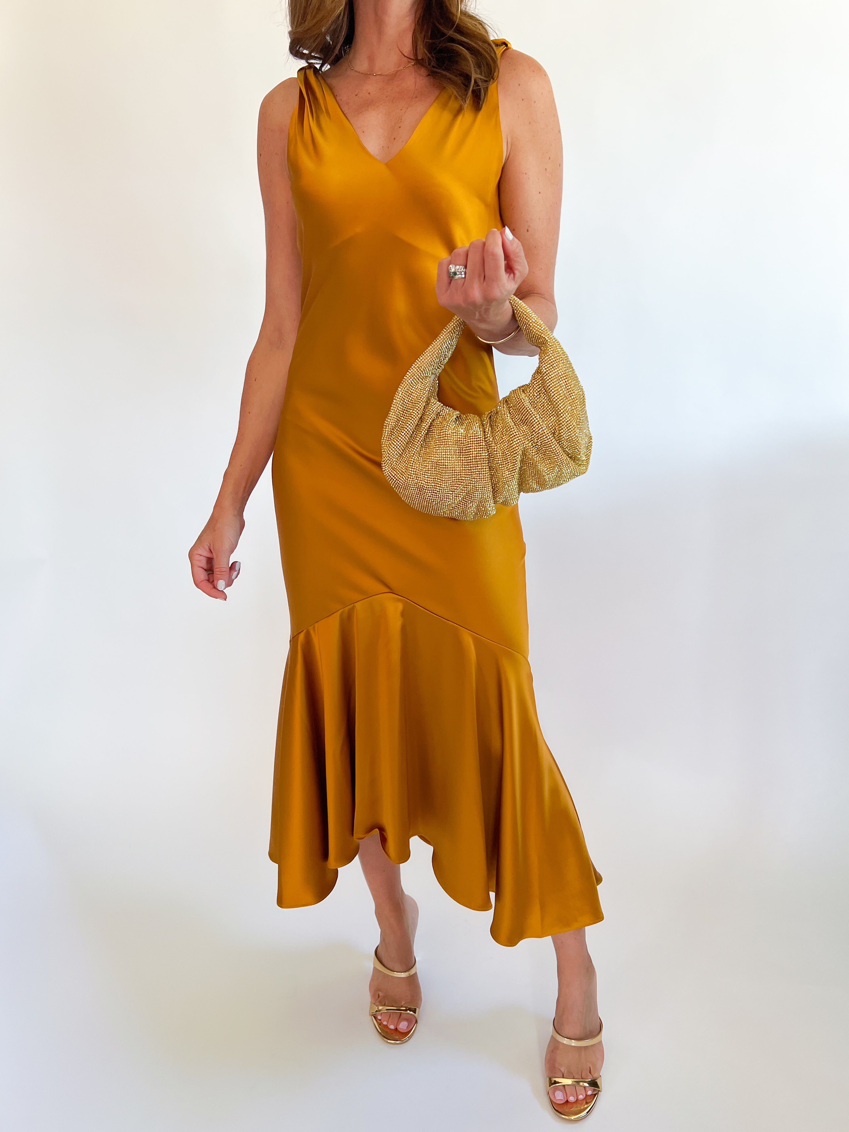 Upgrade your closet with the Cade Dress, a chic and adaptable choice perfect for moving effortlessly from daytime sophistication to nighttime glamour. Made from a satin blend that offers a smooth flow and gentle shine, this midi dress blends classic design with contemporary comfort.