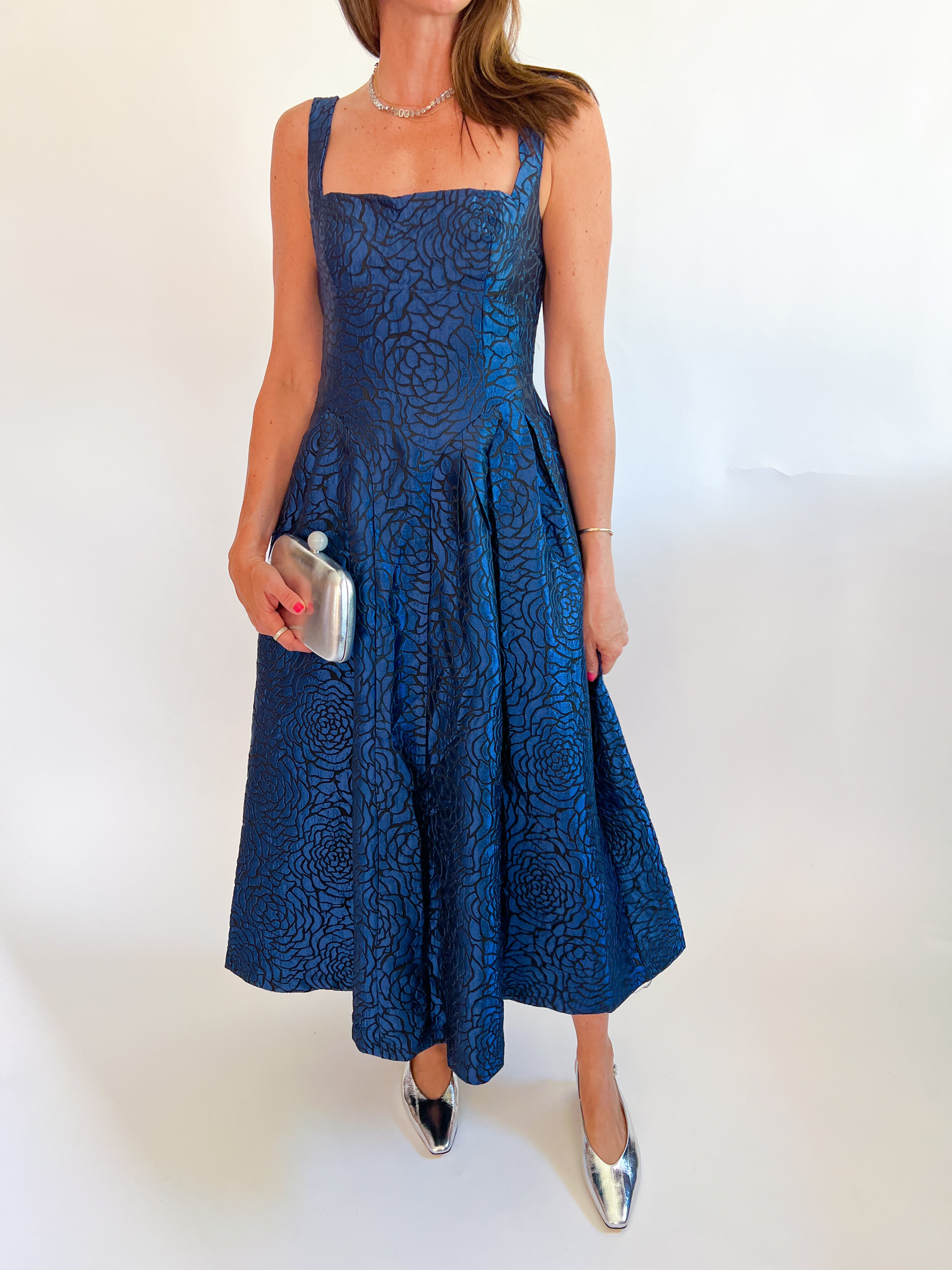 This sleeveless midi dress combines elegant texture with a flattering silhouette. Featuring a straight neckline and delicate straps, it flows into a full skirt with a captivating low back design. Crafted from lightweight polyester with a smooth lining, it offers comfort and style. Perfect for showing off your carefree spirit with its easy zipper closure and a length that hits right at midi. Whether dressing up or down, this dress promises to turn heads and keep you feeling fabulous all day long.