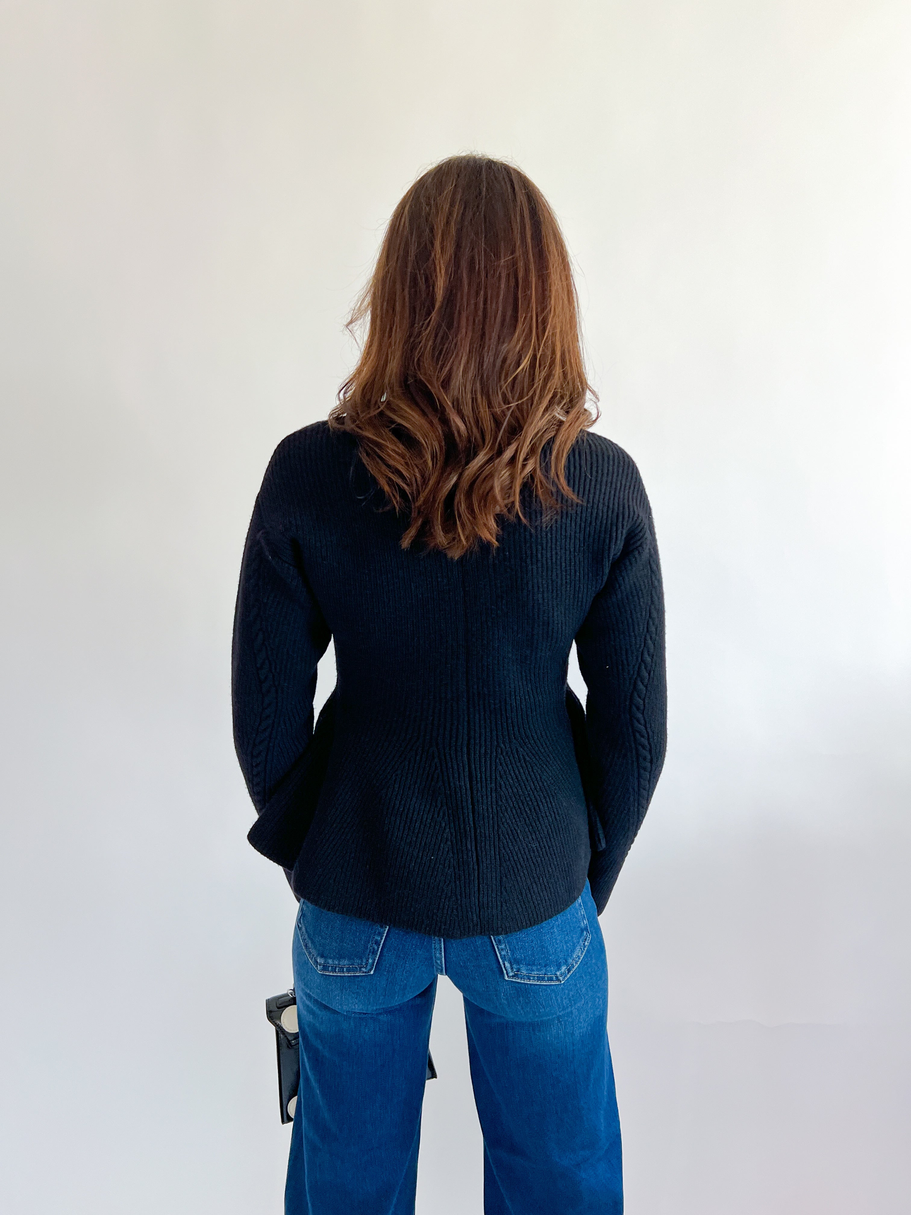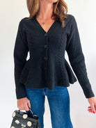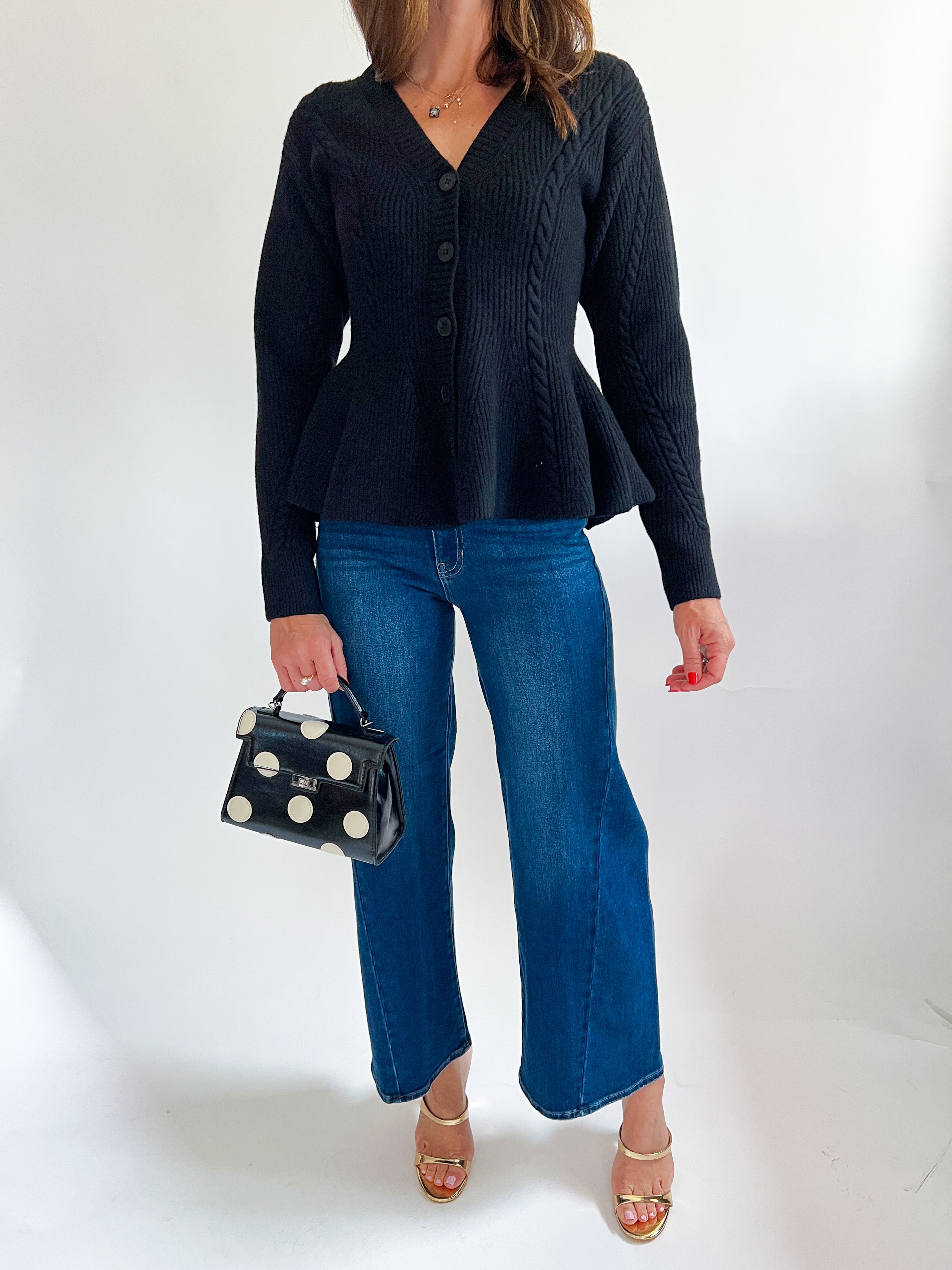 The Courtney Sweater features a flattering v-neckline and oversized long sleeves that add a stylish statement. With dropped shoulders and a button front closure, it combines comfort and effortless charm. The flared hem completes this cozy sweater with a playful, modern touch perfect for any casual look.