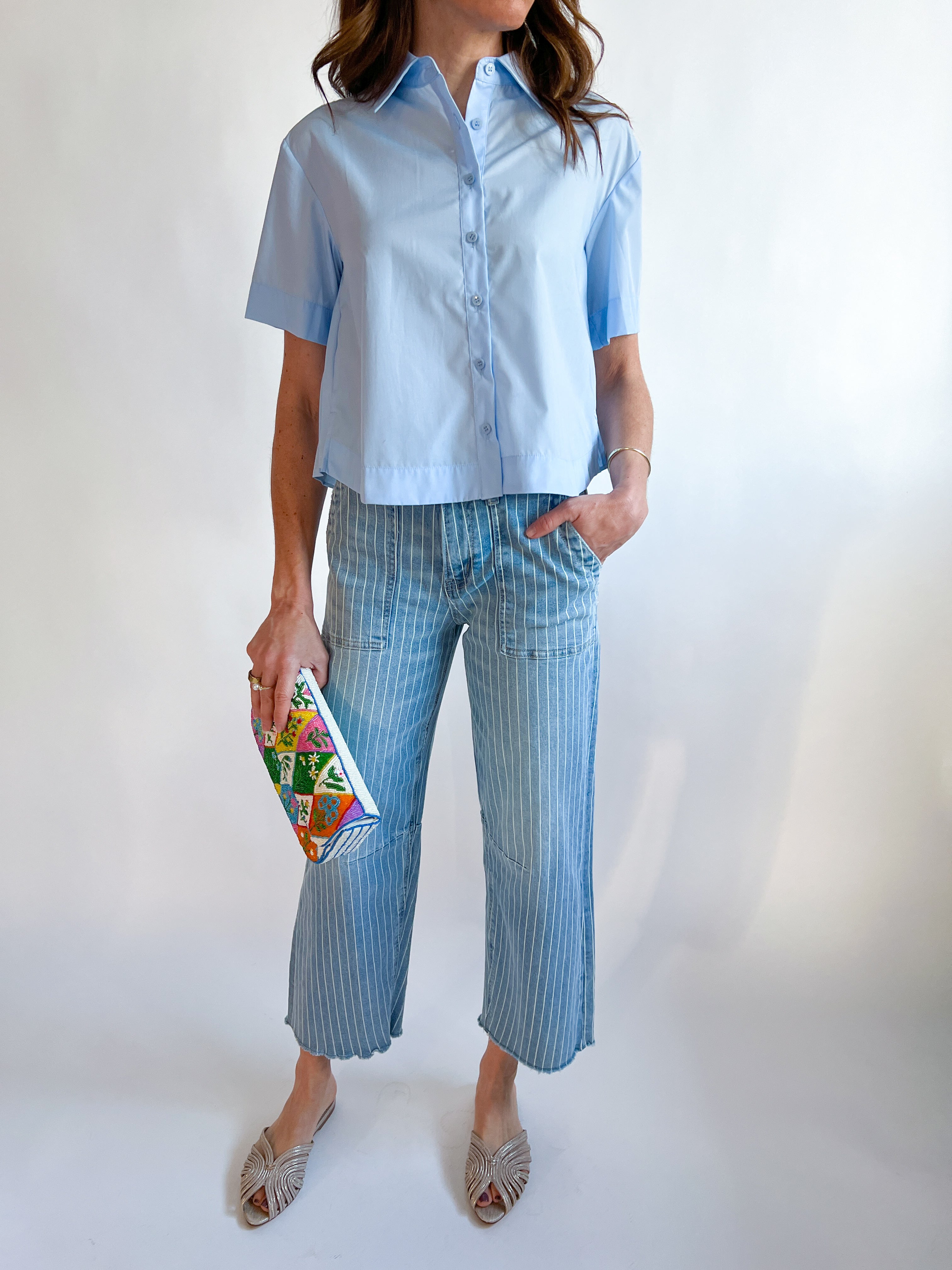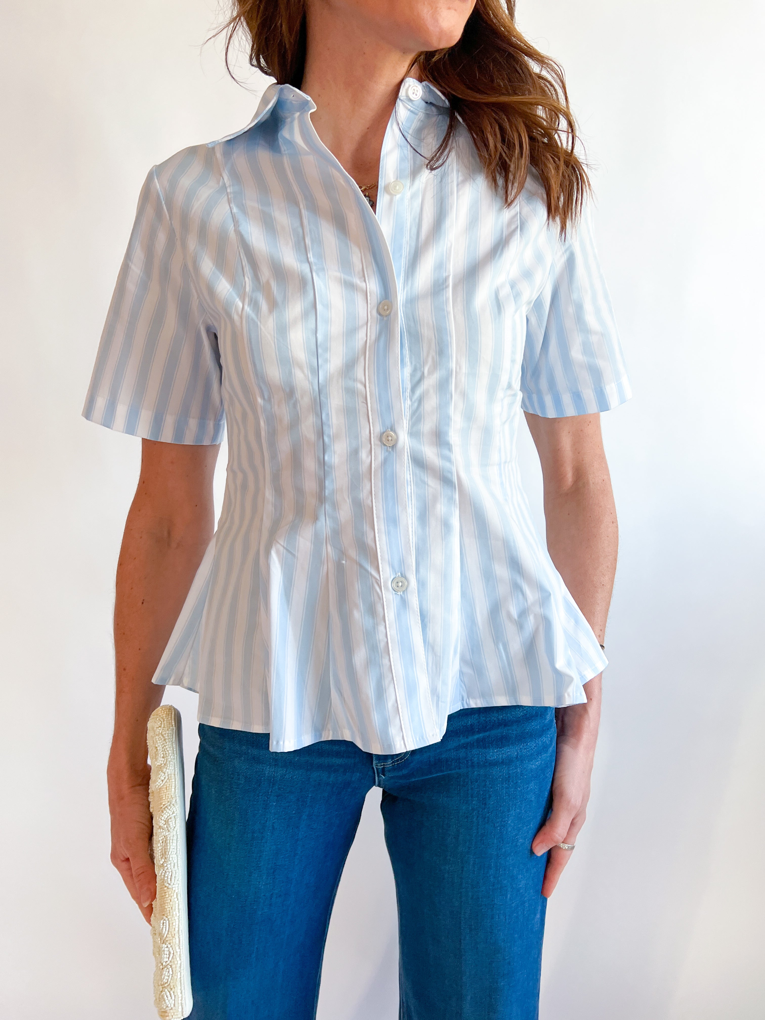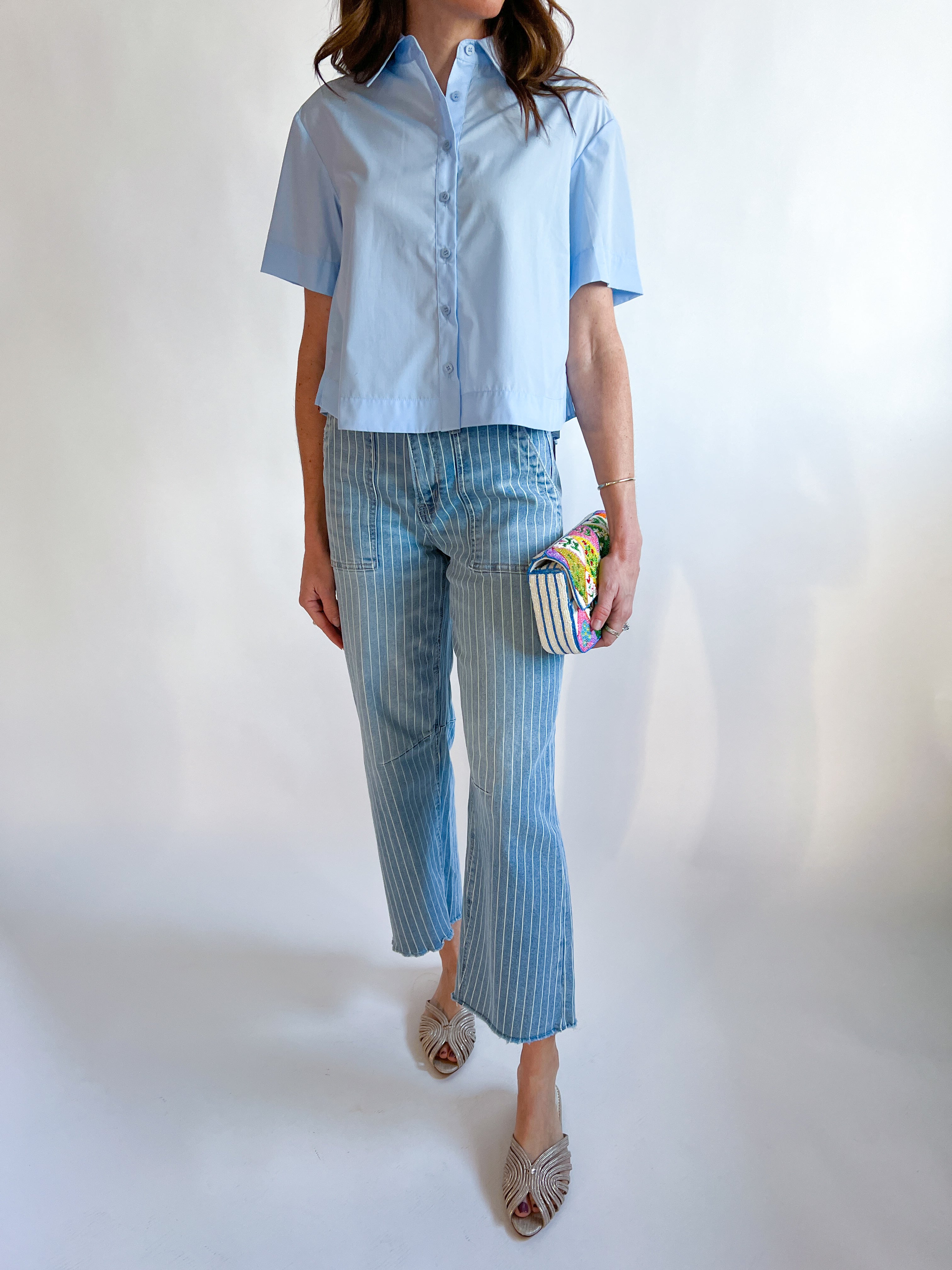Button Front Baby Blue Top