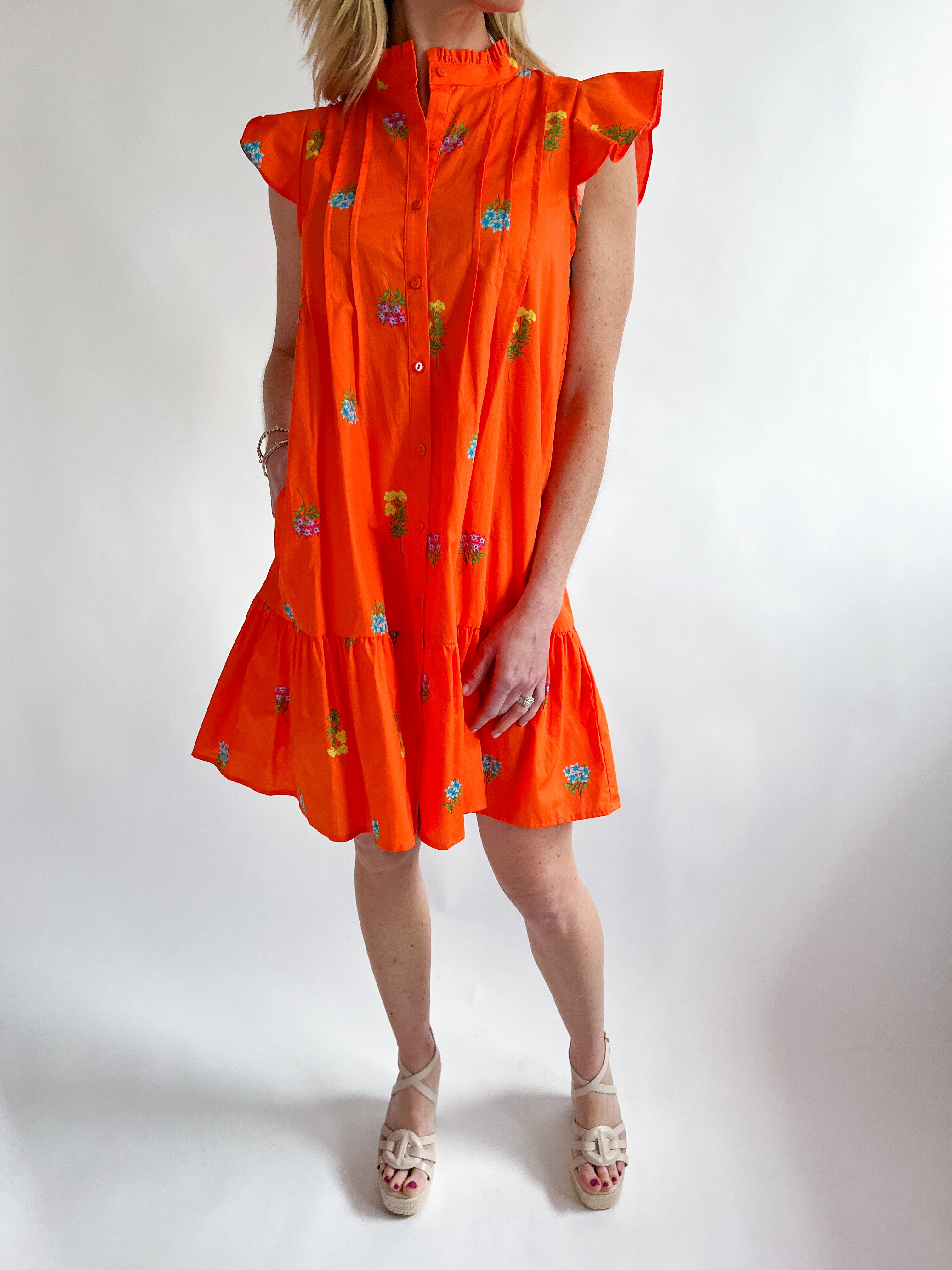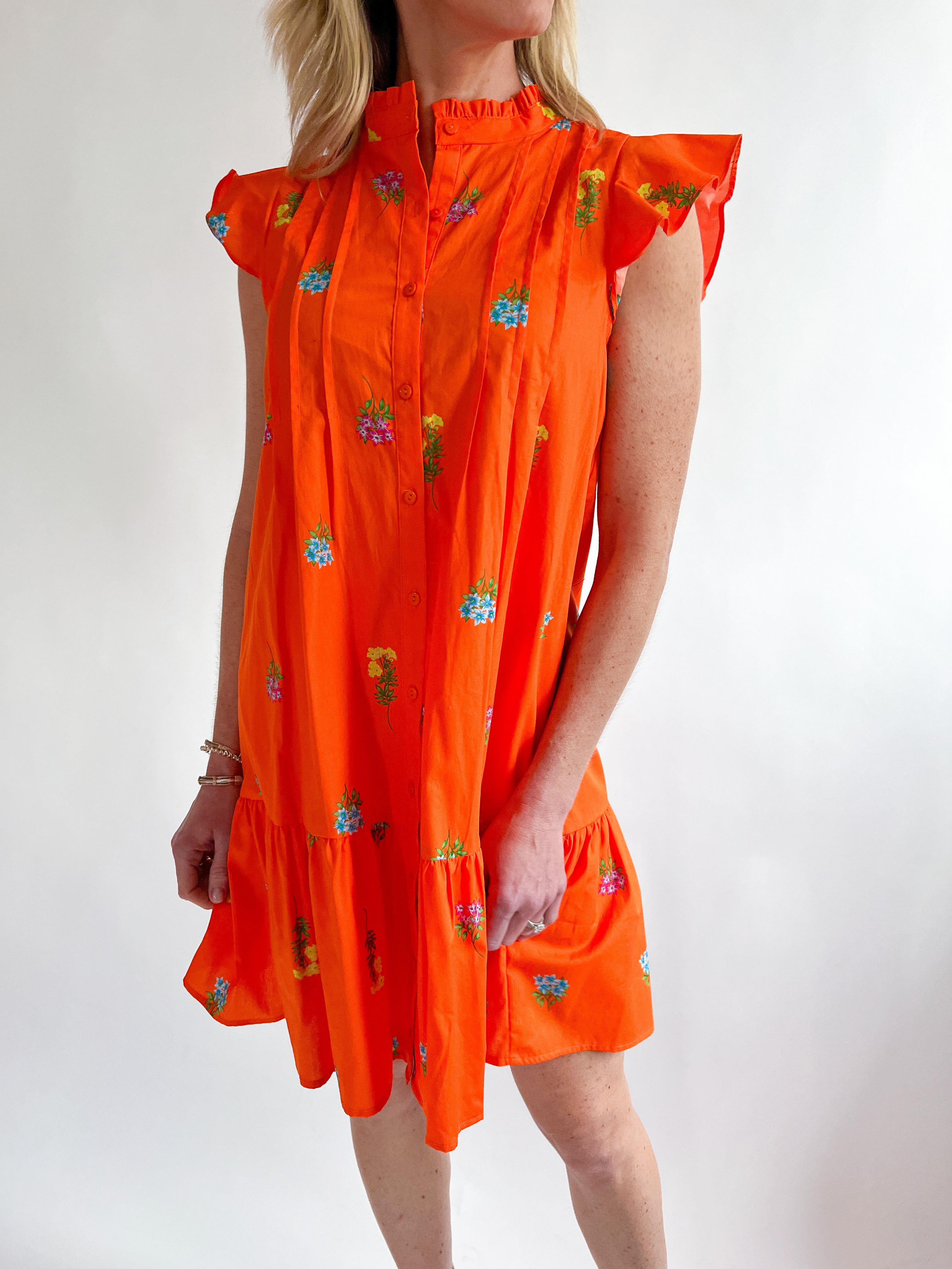 Cotton Floral Embroidered Mini Dress