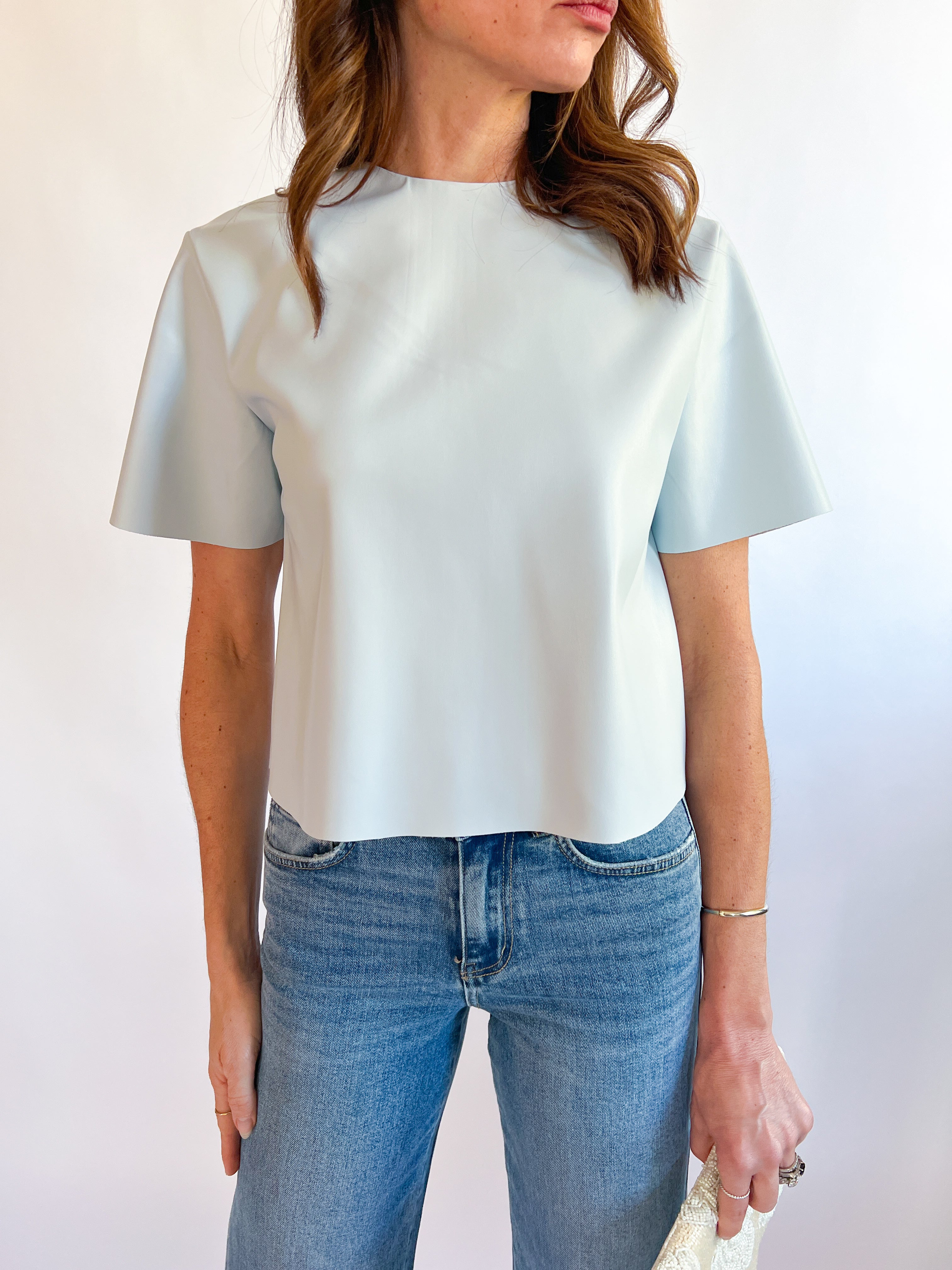 Leather Jewel Neck Tee