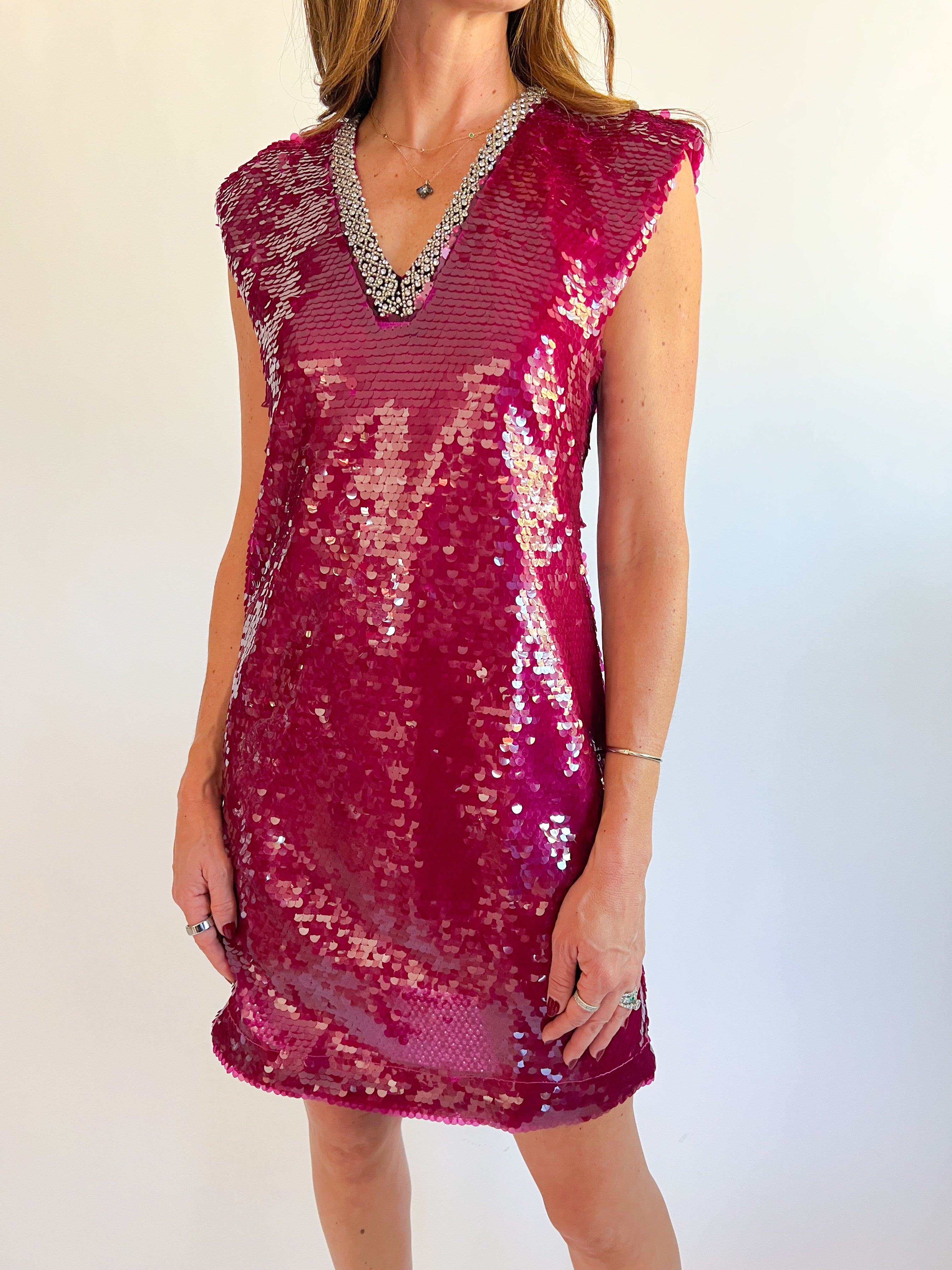 Slip into pure glamour with the Madison V-Neck Sequin Mini Dress! This show-stopping piece features shimmering sequins that catch the light from every angle, creating an irresistible sparkle. The flattering V-neckline adds sophistication while the mini length keeps things fun and flirty. Perfect for nights out, parties, or whenever you want to feel absolutely fabulous. Whether you're dancing the night away in the French Quarter or turning heads at your favorite venue, this dress delivers serious style and confidence. Get ready to shine!