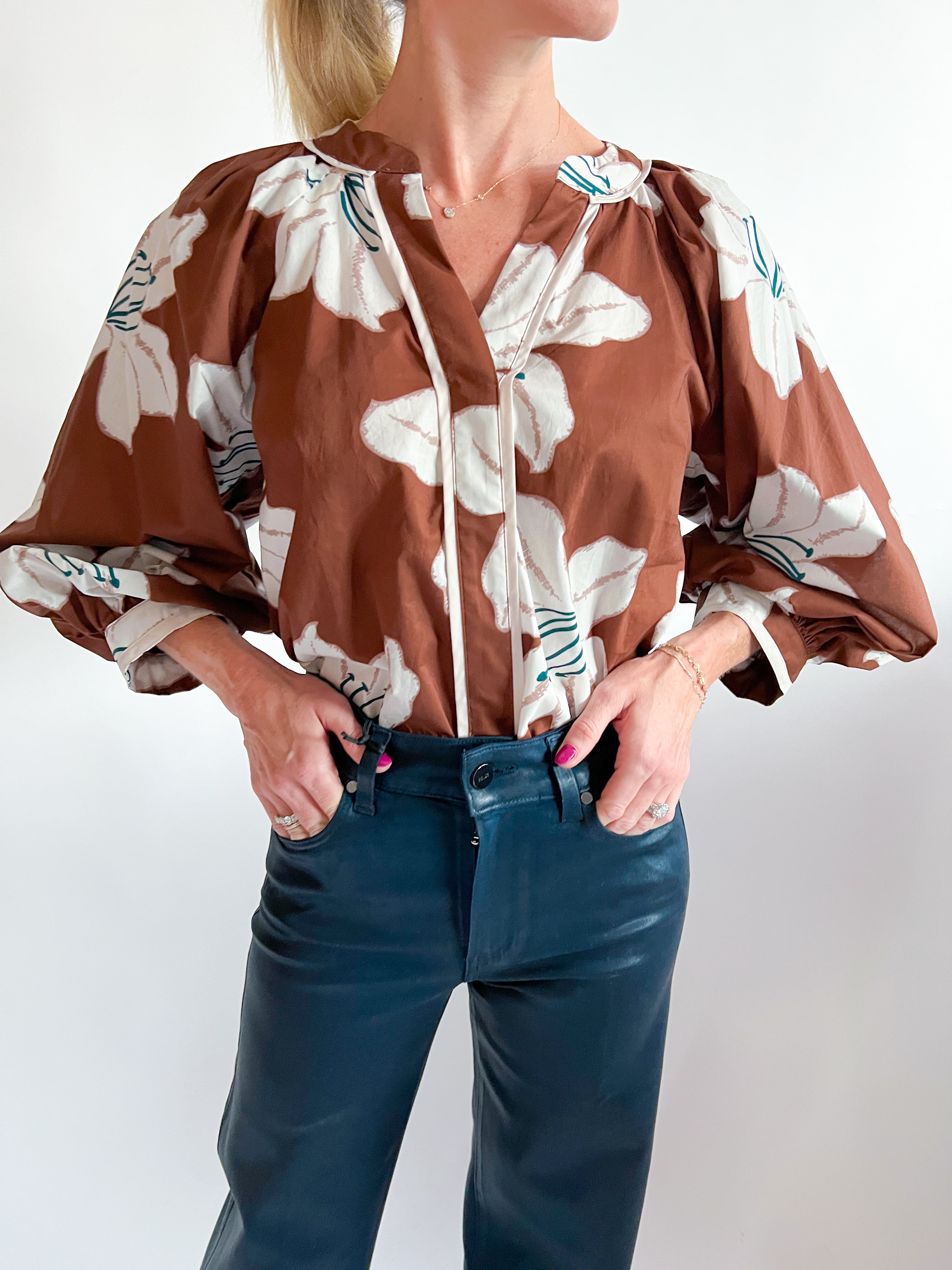 Brighten your wardrobe with the Anna Floral Blouse, a cheerful choice that effortlessly blends style and comfort. Featuring a lively floral pattern, this blouse brings a touch of nature’s beauty to any outfit. Its lightweight fabric ensures all-day comfort, making it perfect for both casual outings and dressier occasions. Enjoy a fresh, feminine look that’s as joyful as you are!