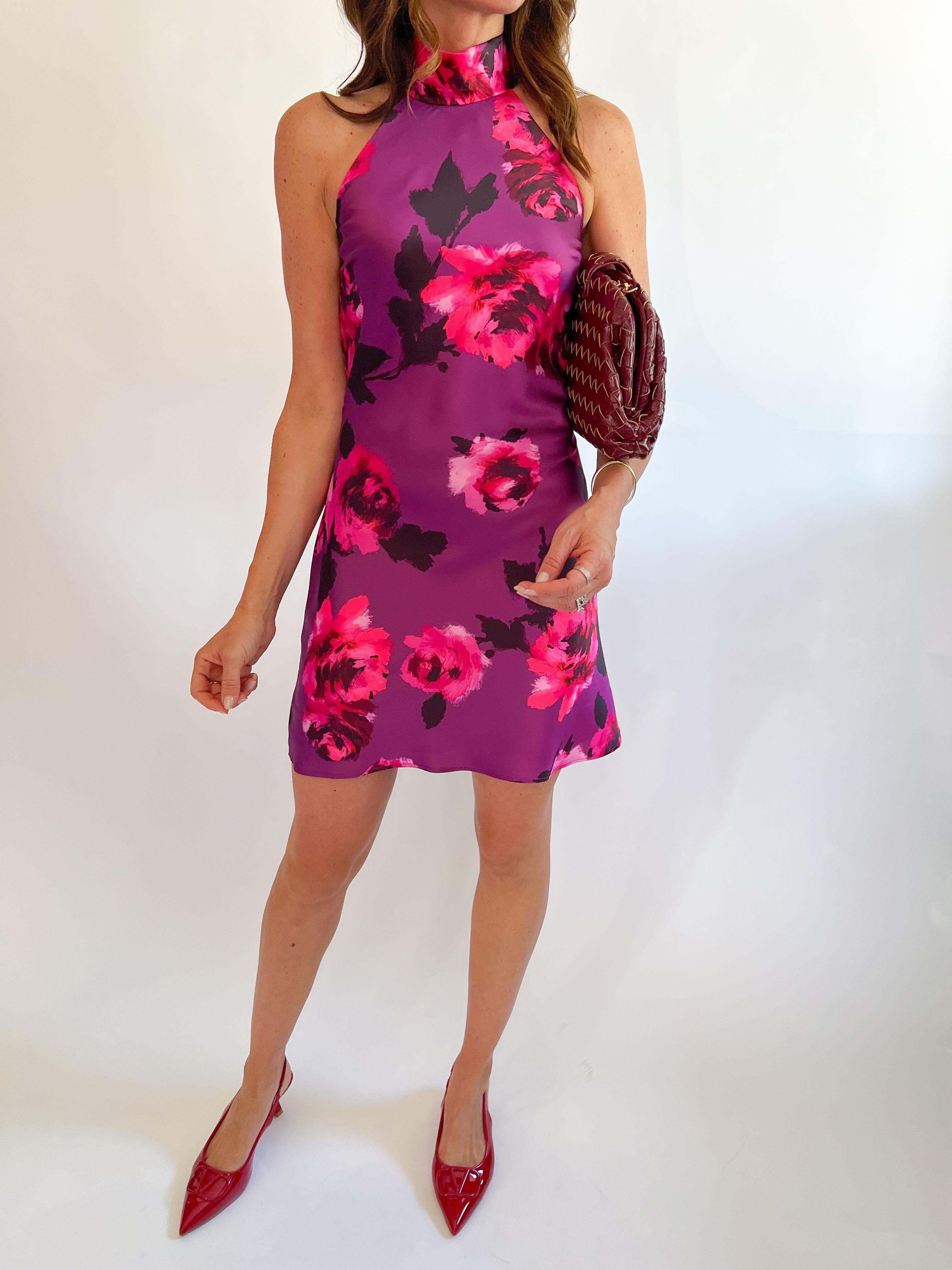 Refresh your summer style with the Lara Mini Dress. This charming mini halter dress showcases a soft floral pattern that adds a lovely feminine flair. The halter neckline creates a flattering shape while helping you stay cool and comfy. Ideal for both daytime adventures and night-time occasions, its lightweight fabric ensures you move freely with ease and grace.