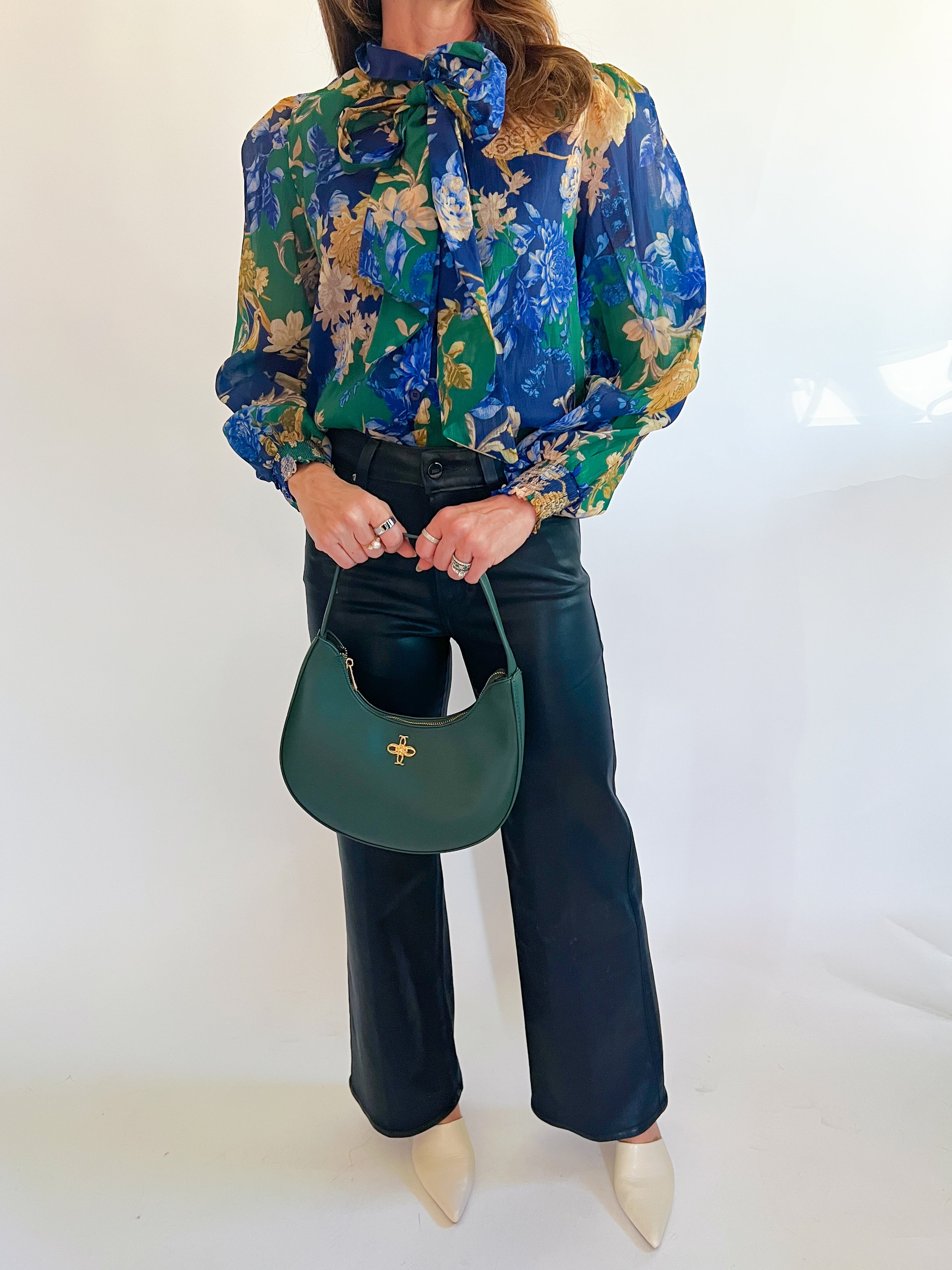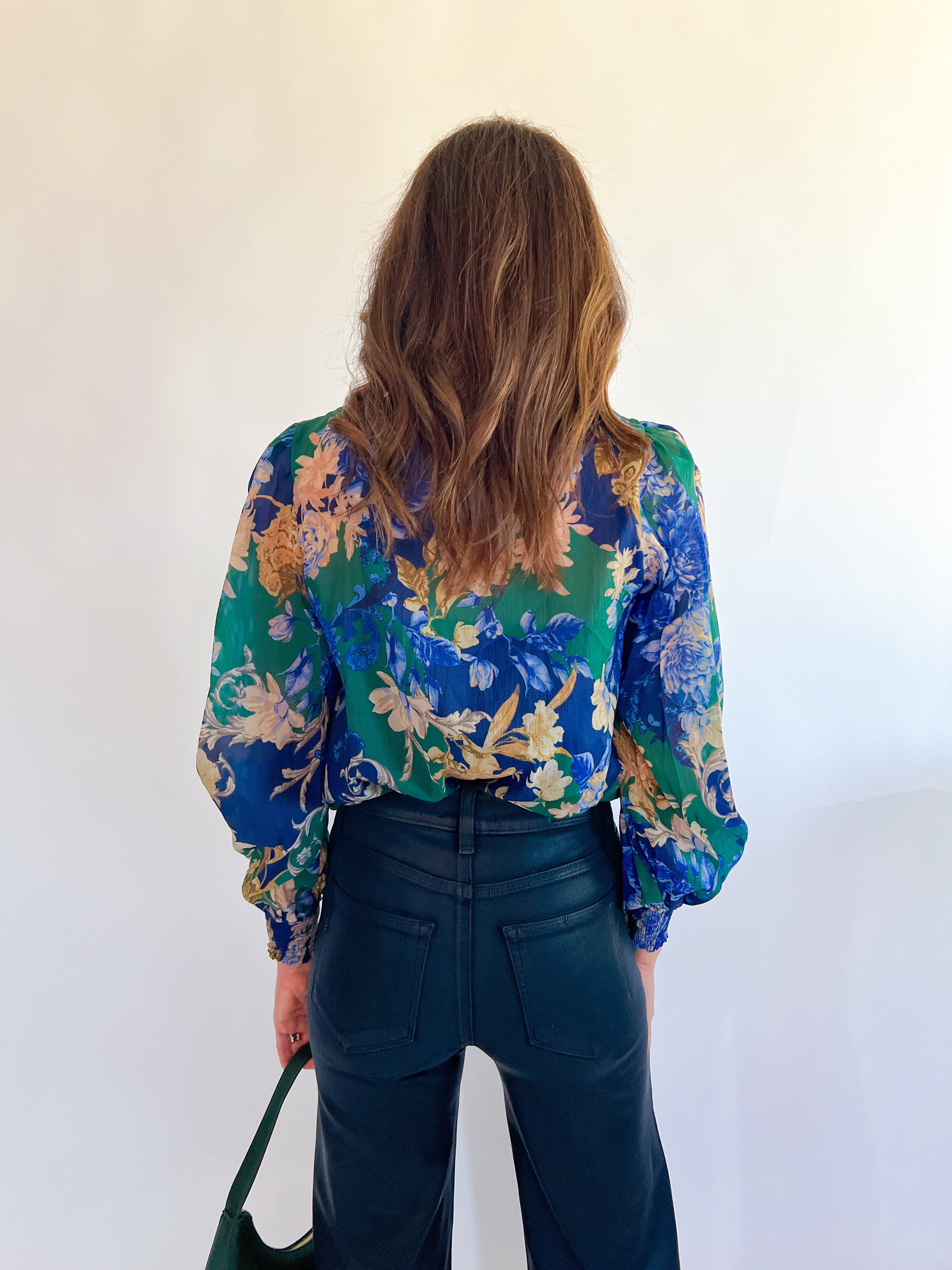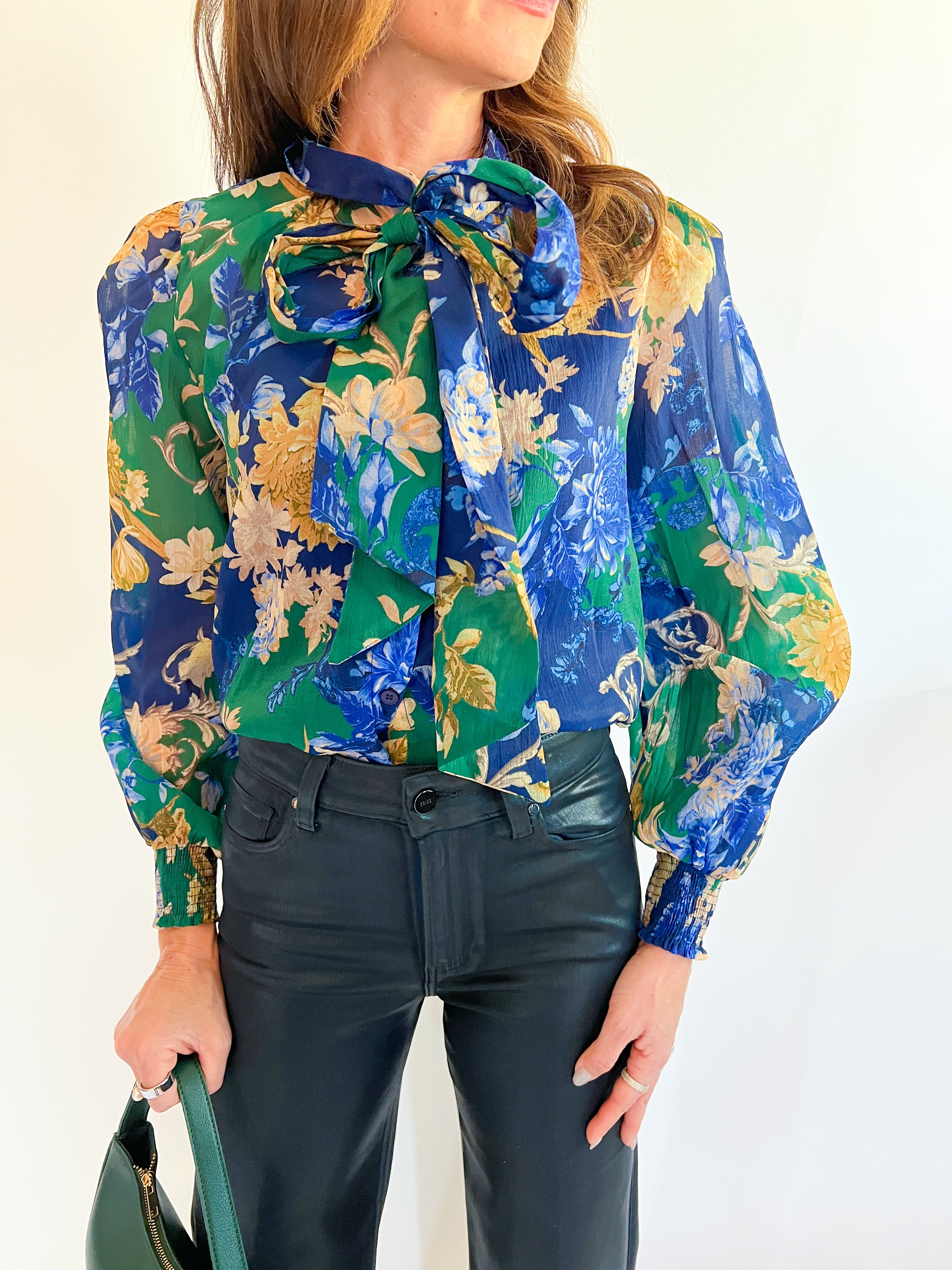 This Printed Woven Top is designed with a playful front bow tie, long sleeves finished with smocked cuffs for added flair, and a classic button-down front that combines charm and elegance in one stylish piece. Perfect for brightening up your everyday wardrobe with a fun, polished touch.
