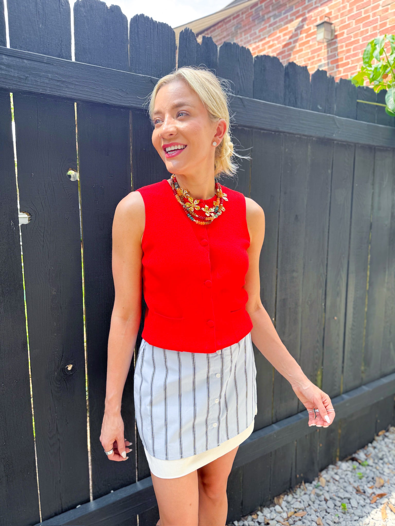 The Cosysoft Knit Vest is a modern take on the classic sweater vest—designed with self-covered buttons for extra versatility. Made from our signature knit, it’s soft, stretchy, and easy to style. Wear it buttoned up as a top, layered over a tee, or left slightly undone for a more relaxed feel. It’s one of those pieces that somehow works with everything.