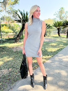 The Vhari Sleeveless Turtleneck Dress offers cozy comfort and effortless style for your fall and winter closet. Made from soft, warm Vhari knit, this sleeveless sweater dress boasts a relaxed silhouette and a timeless turtleneck. Wear it solo or pair it with boots for a chic, easygoing look that's perfect for everything from casual outings to special events.