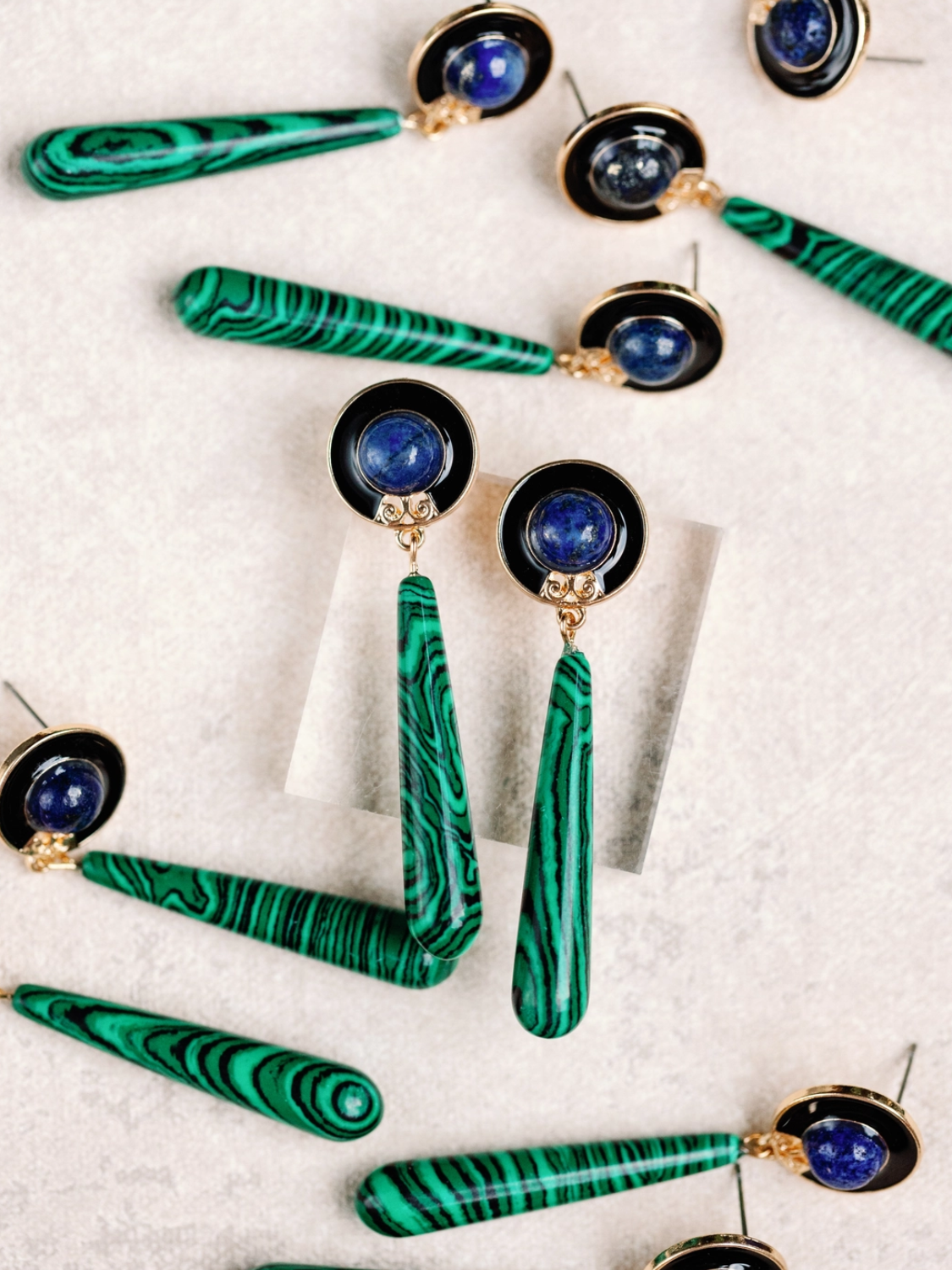 Discover natural beauty with these stunning Lapis & Malachite Drop Earrings! Featuring the rich, deep blues of lapis lazuli paired with the mesmerizing green swirls of malachite, these earrings celebrate the magic of gemstones. Each pair showcases unique natural patterns, making them truly one-of-a-kind treasures. The elegant drop design lets these gorgeous stones take center stage while adding movement and sophistication to your look. Perfect for gemstone lovers and anyone seeking earrings with character, meaning, and undeniable style. Wear your love of nature in the most fabulous way!