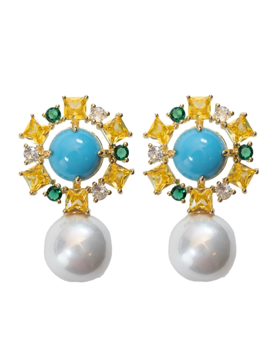 Transport yourself to tropical paradise with these Palm Beach Glam statement earrings! Combining vintage pearl elegance with vibrant turquoise accents, these beauties capture that effortless coastal sophistication we all crave. The stunning color combination brings warmth and personality to any ensemble, from casual daytime looks to evening affairs. Perfect for adding a pop of color and vintage-inspired charm to your jewelry rotation. Whether you're dreaming of sunny shores or just want to channel that breezy, glamorous vibe, these earrings are your new go-to accessory!