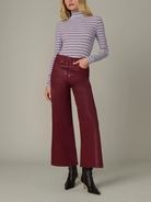 Step into style and comfort with the Syrah Coated Mia Wide Leg Pants. These pants blend a sleek coated finish with a relaxed wide-leg cut, offering a chic, elevated look perfect for day-to-night wear. Enjoy the freedom of movement and a flattering silhouette that pairs effortlessly with your favorite tops. Make these versatile pants your new wardrobe favorite!