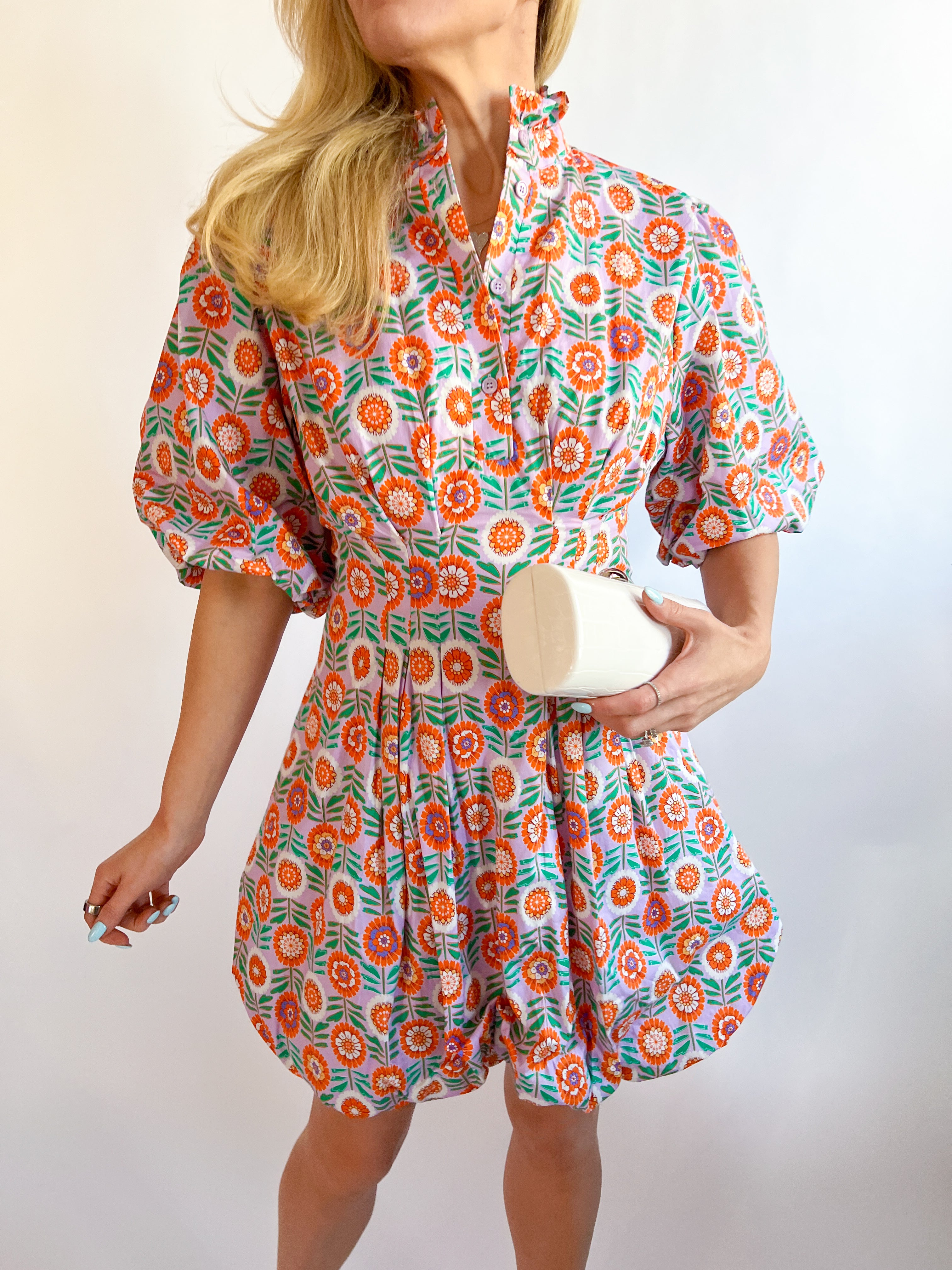 Floral Bubble Hem Poplin Dress