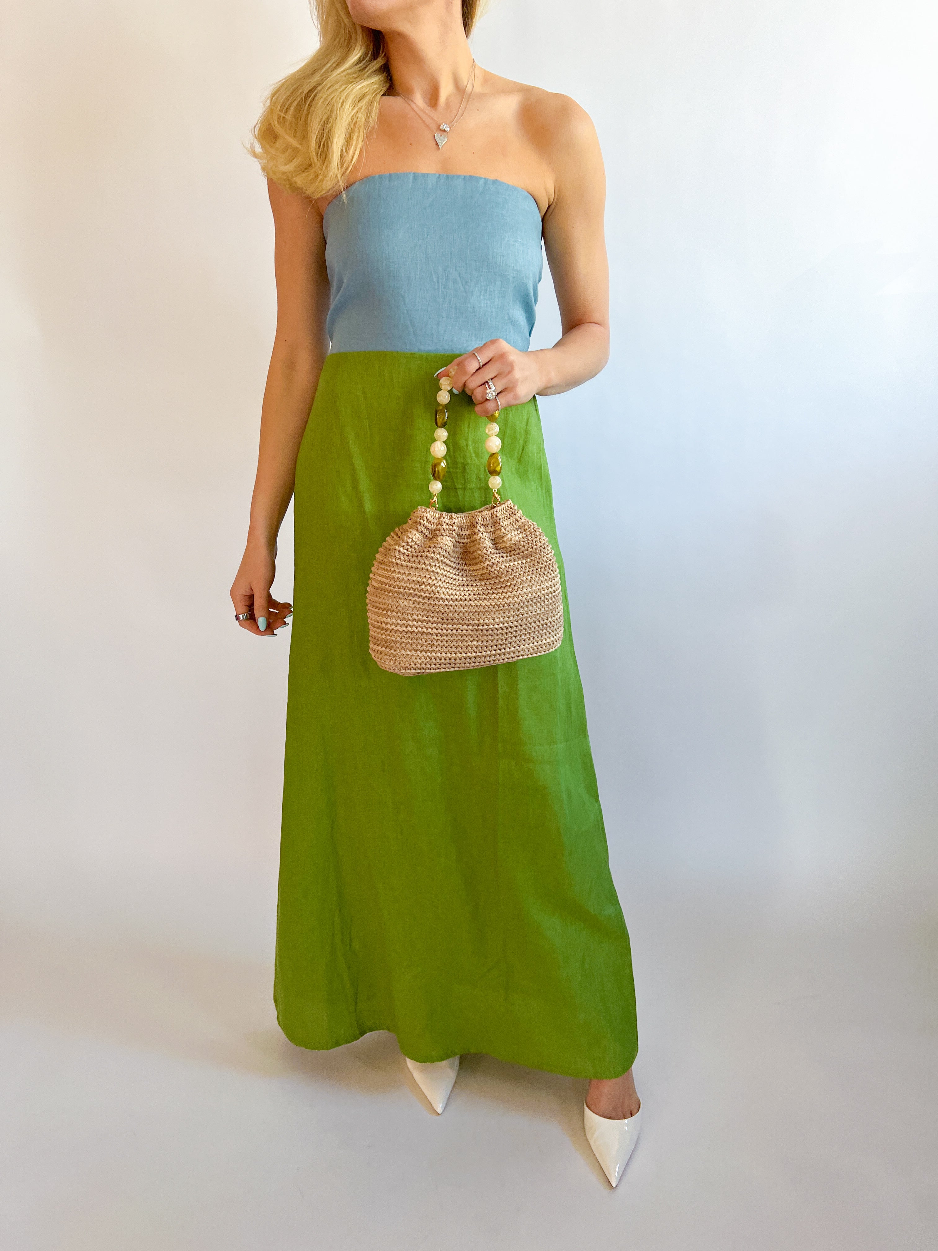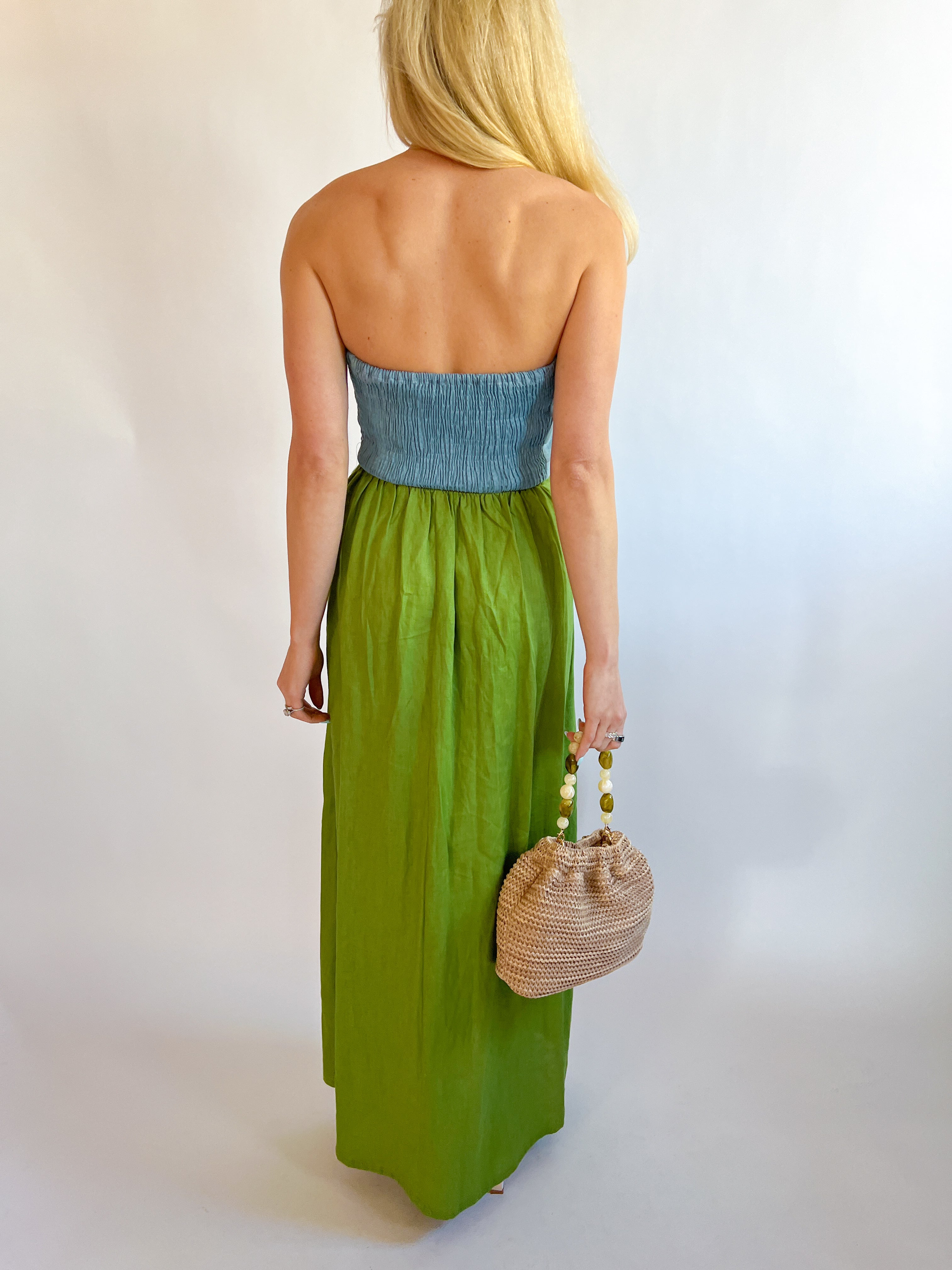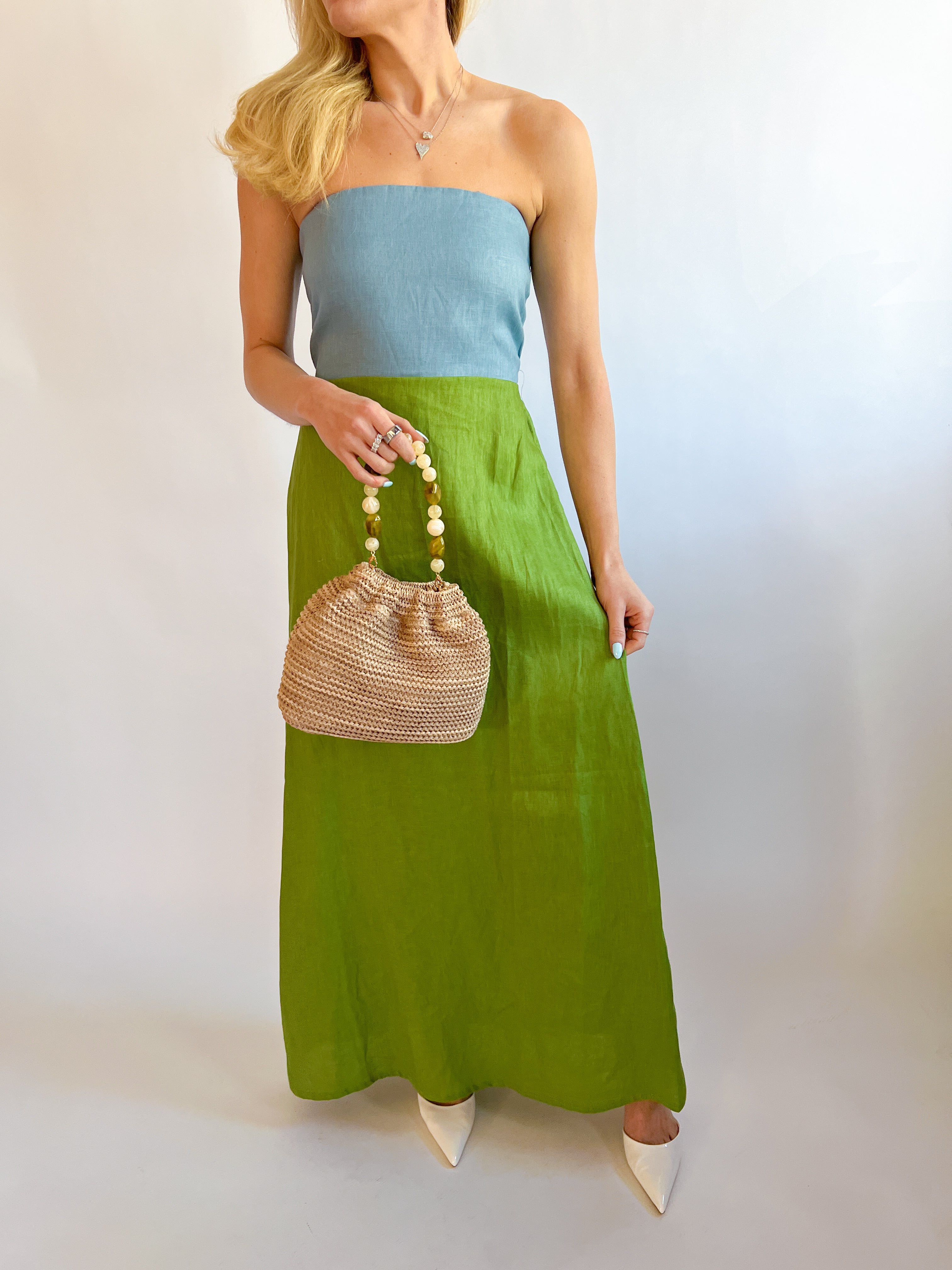 Colorblock Linen Bustier Maxi