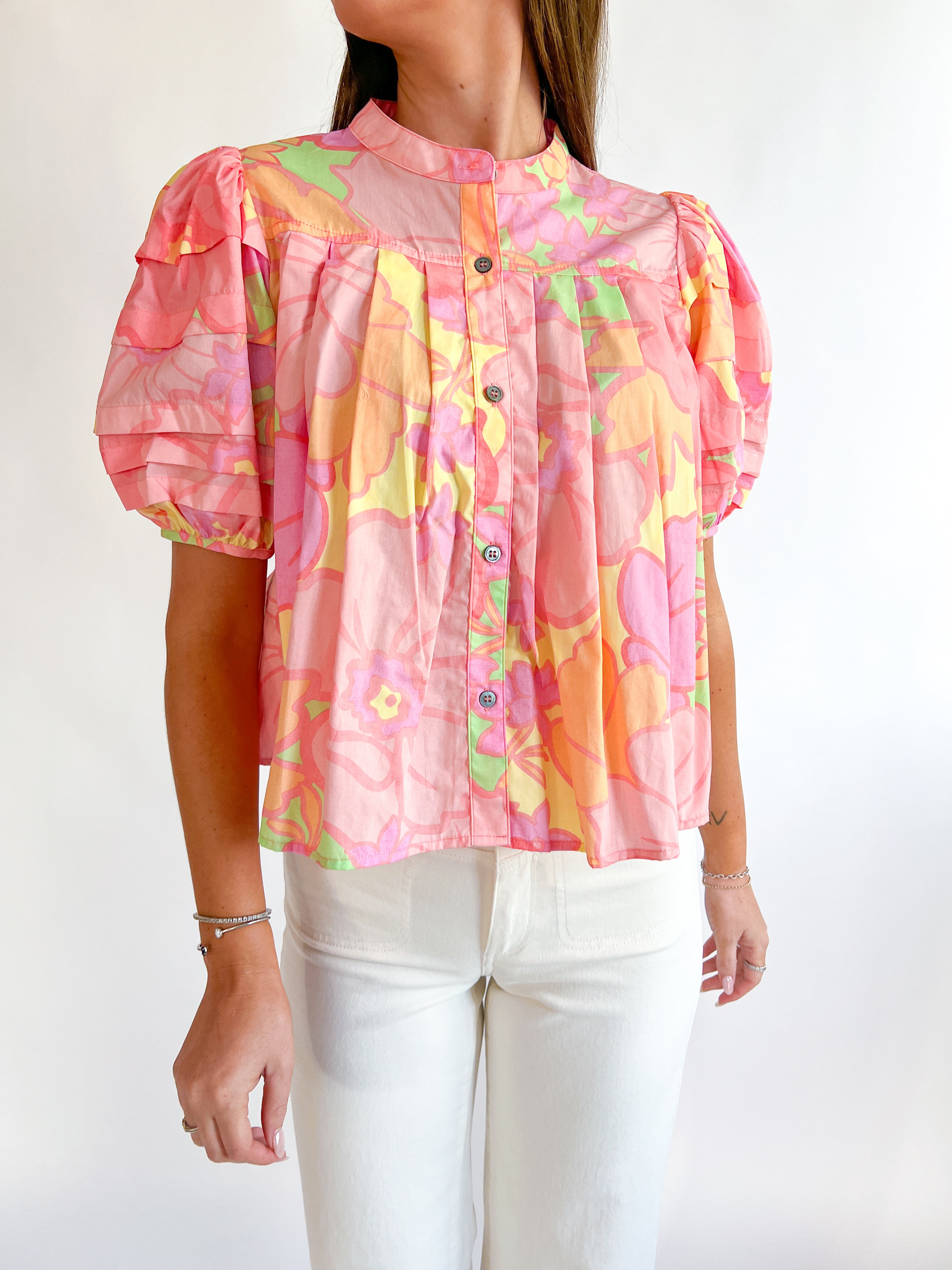 Floral Pastel Pleat Top