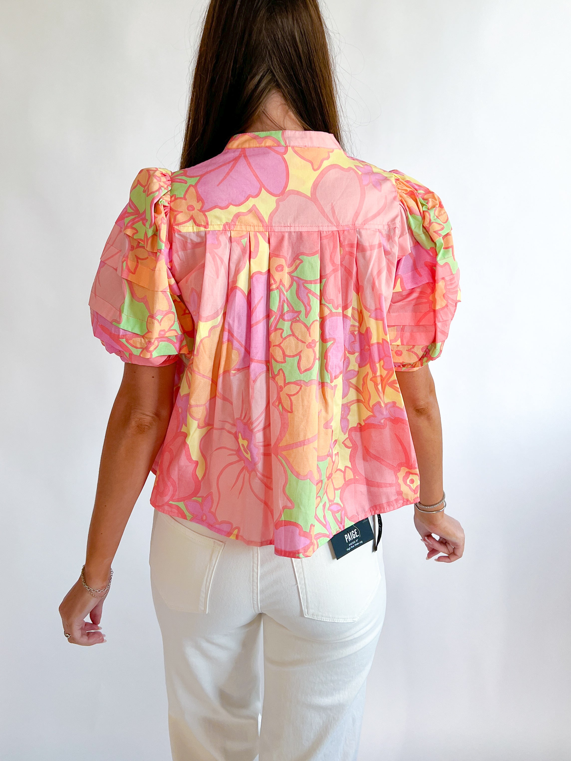 Introducing the Floral Pastel Pleat Top – your new go-to piece for effortless elegance! This charming top features delicate floral patterns in soft pastel hues that instantly brighten any outfit. The thoughtfully designed pleats add dimension and movement, creating a flattering silhouette that works beautifully for both casual days and special occasions. Perfect for layering or wearing solo, this versatile piece brings a touch of romance and sophistication to your wardrobe. Embrace your inner fashionista and make this stunning top your next favorite!