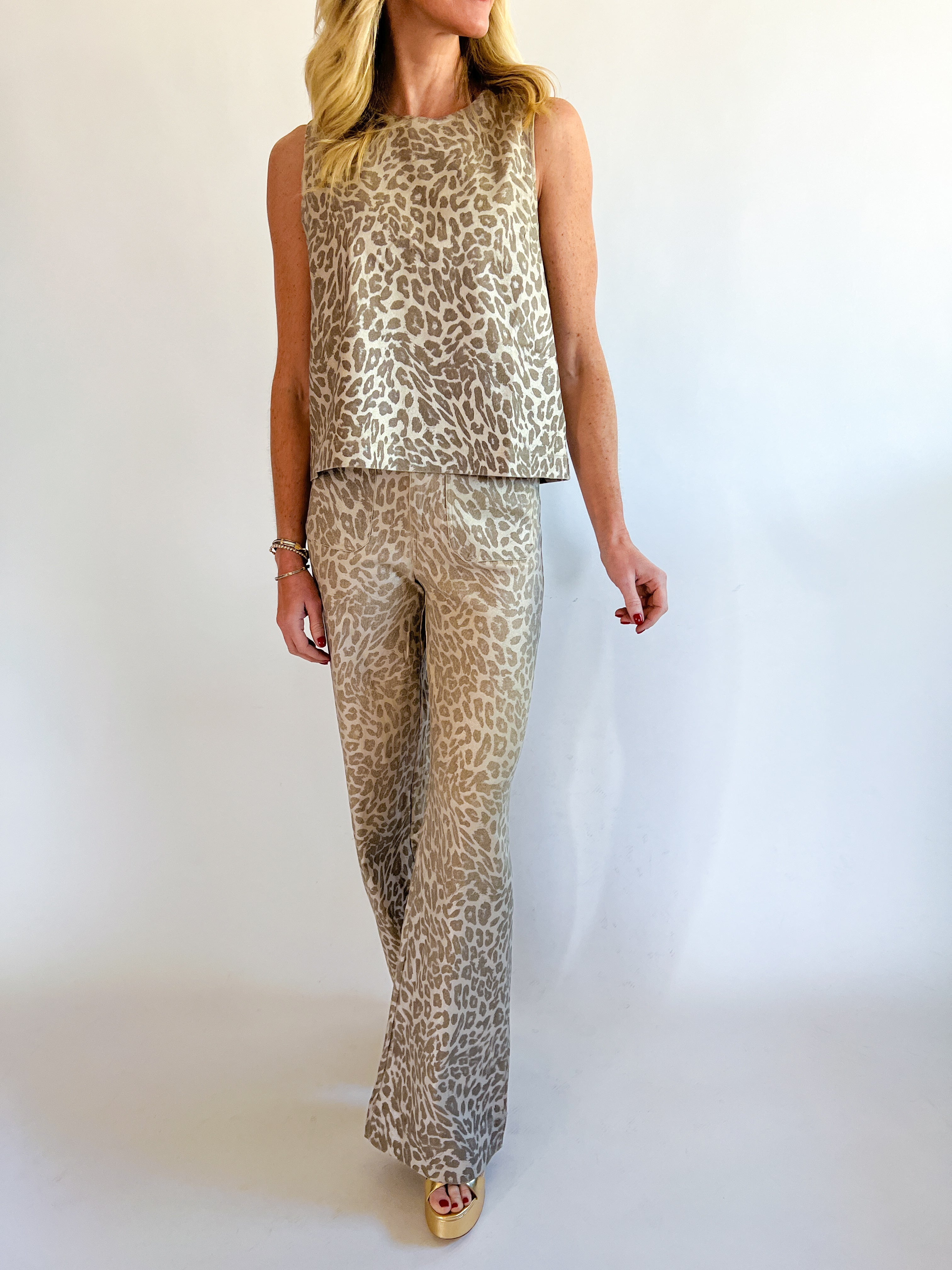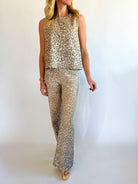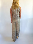 Make a bold statement with these stunning Miranda Metallic Animal Print Wide Leg Pants! Featuring eye-catching animal print in shimmering metallic tones, these pants deliver instant glamour to any outfit. The relaxed wide-leg silhouette offers comfort without compromising on style, making them perfect for nights out or elevated casual wear. Pair them with a simple top to let the print shine, or dress them down with sneakers for an effortlessly chic look. Get ready to turn heads!
