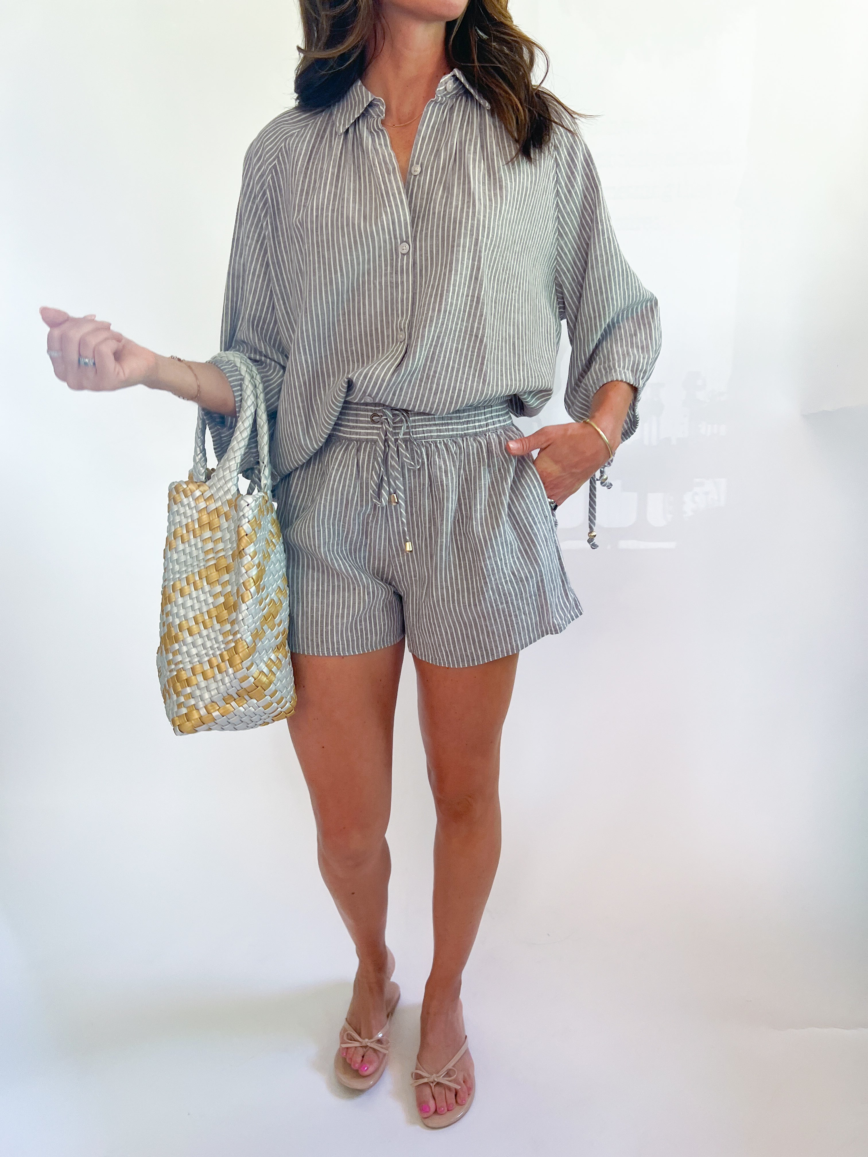 The Stone Stripe Penny Shorts features a stylish striped design and an elastic waist with a drawstring for a comfortable, adjustable fit. With convenient side pockets and a matching top available, it’s perfect for creating a coordinated, effortlessly cool look. Ideal for casual outings or relaxed weekends!